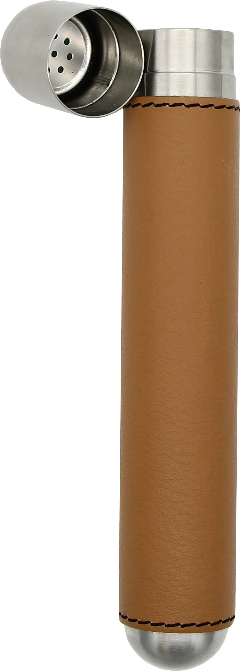 adorini Edelstahl Zigarrenetui mit braunem Lederbezug