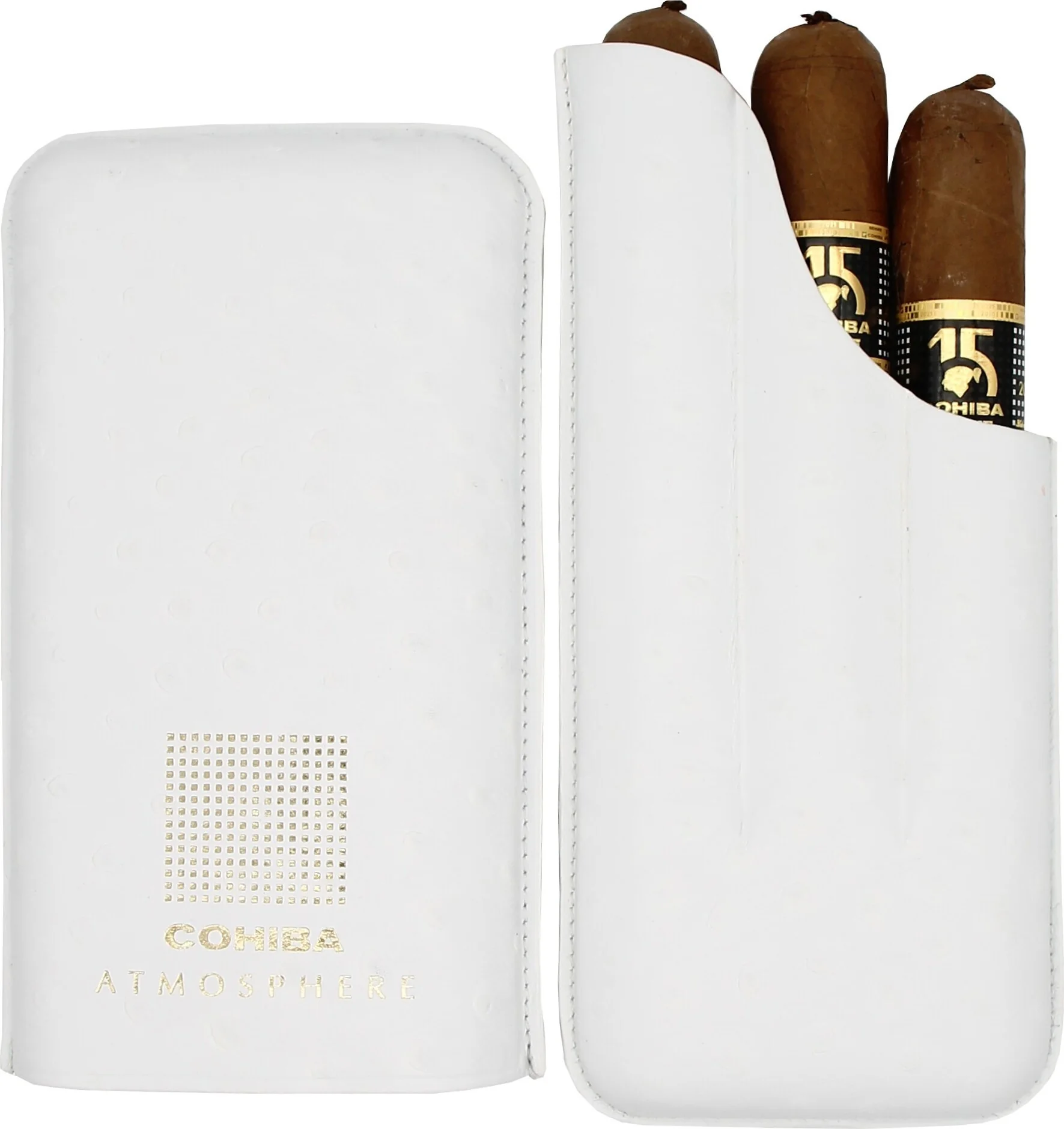 Cohiba Atmosphere Zigarrenetui Leder Weiß & Gold: Eleganz aus Kuba für unterwegs