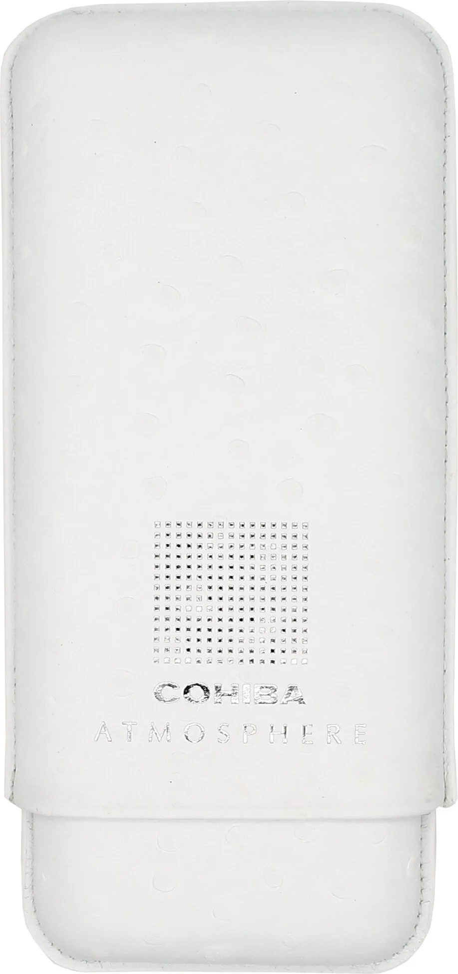 Auf der Front sorgt der elegante silberne Cohiba Atmosphere Logodruck für sofortige Wiedererkennbarkeit und verleiht dem Etui eine Aura von Luxus und Authentizität.