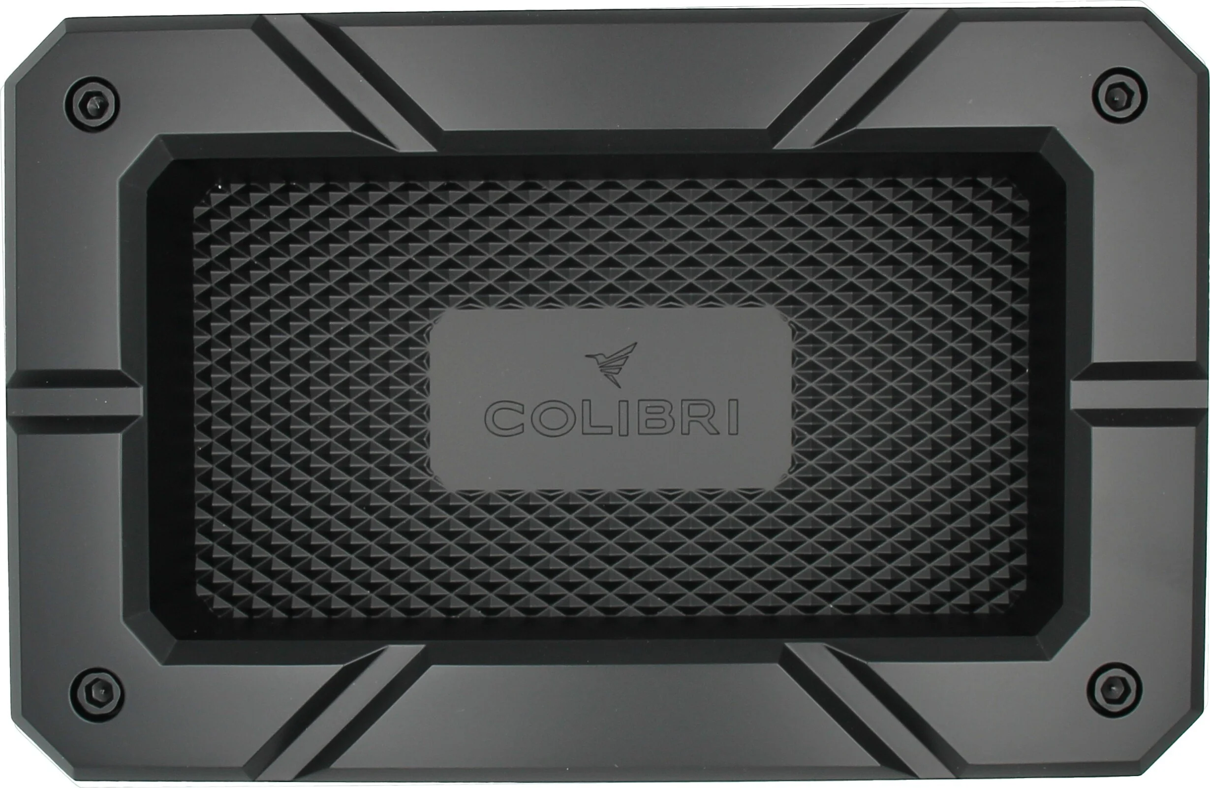 Der tief matt schwarze Zigarrenascher bietet insgesamt sechs Zigarrenablagen und eignet sich damit ideal für den Zigarrengenuss in Gesellschaft. Die großzügig dimensionierte Auffangschale sorgt für ausreichend Platz für Asche und Zigarrenstummel. Zentral im Aschenbecher befindet sich das unverkennbare Colibri Markenlogo, das das Design dezent abrundet.