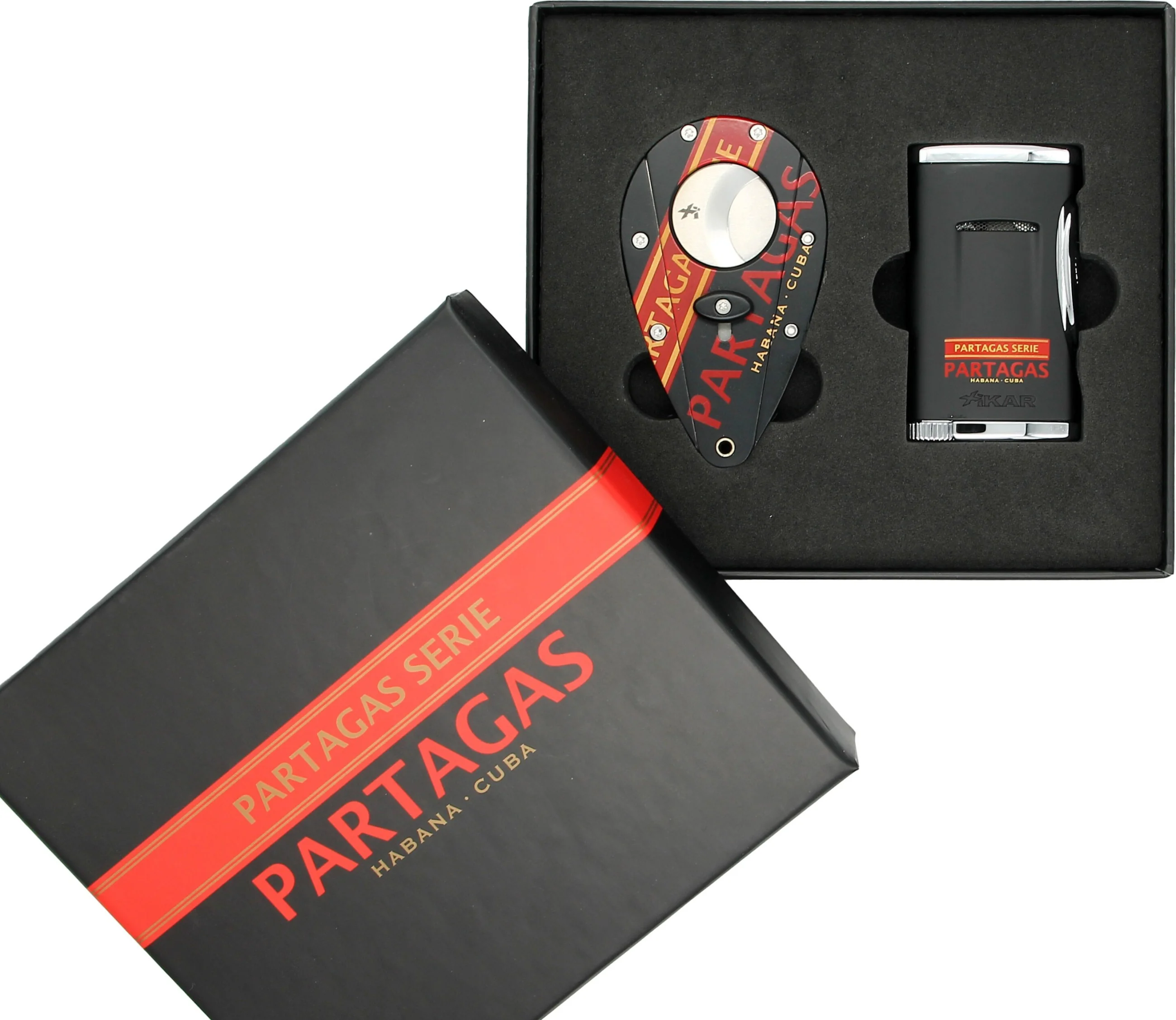 Das Cutter & Feuerzeug Set Partagas Serie Xikar 2017 ist eine Kooperation der kubanischen Zigarrenmarke Partagas und der renommierten Zigarren-Accessoire-Marke Xikar. Das Set besteht aus einem Zigarrenabschneider und einem Jet-Feuerzeug und vereint das Know-how beider Marken für ein außergewöhnliches Zigarrenerlebnis.