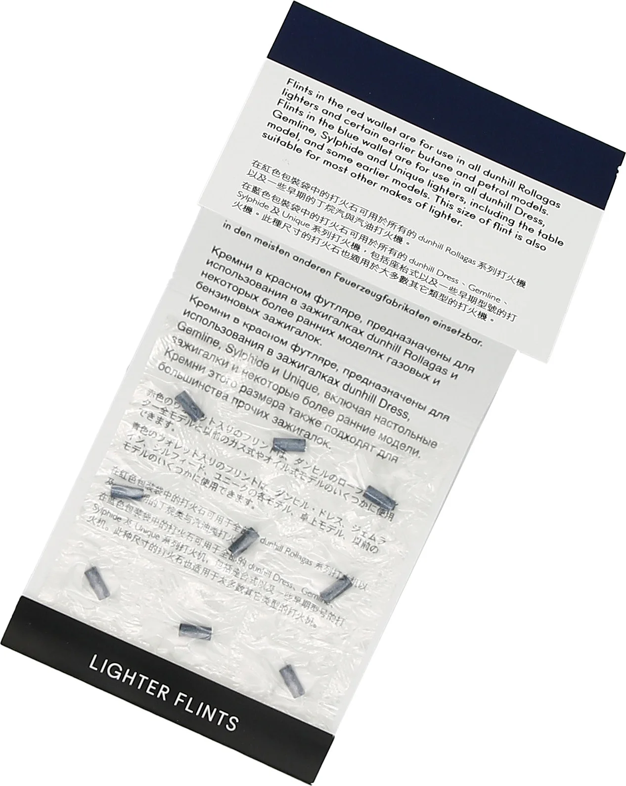 Die Dunhill Feuersteine in Größe A (blau) sind speziell für Dunhill Feuerzeuge der Linie „Unique“ entwickelt. Eine Packung enthält 9 hochwertige Feuersteine, die für eine zuverlässige Zündung und lange Lebensdauer Ihres Dunhill-Feuerzeugs sorgen.