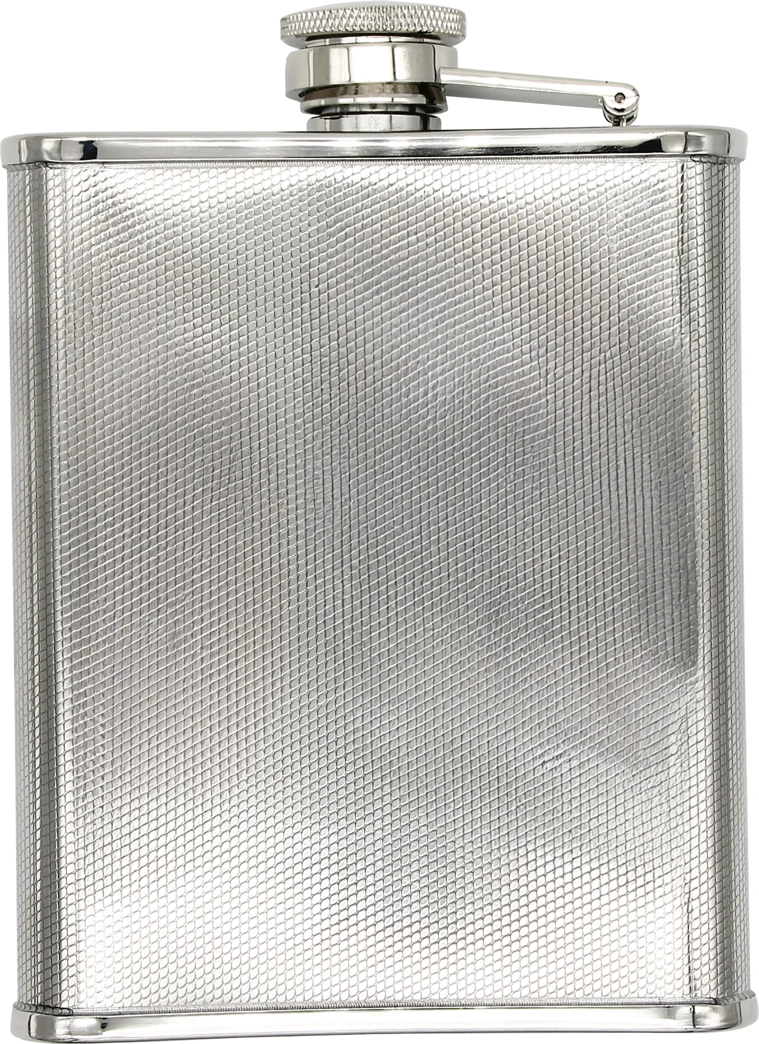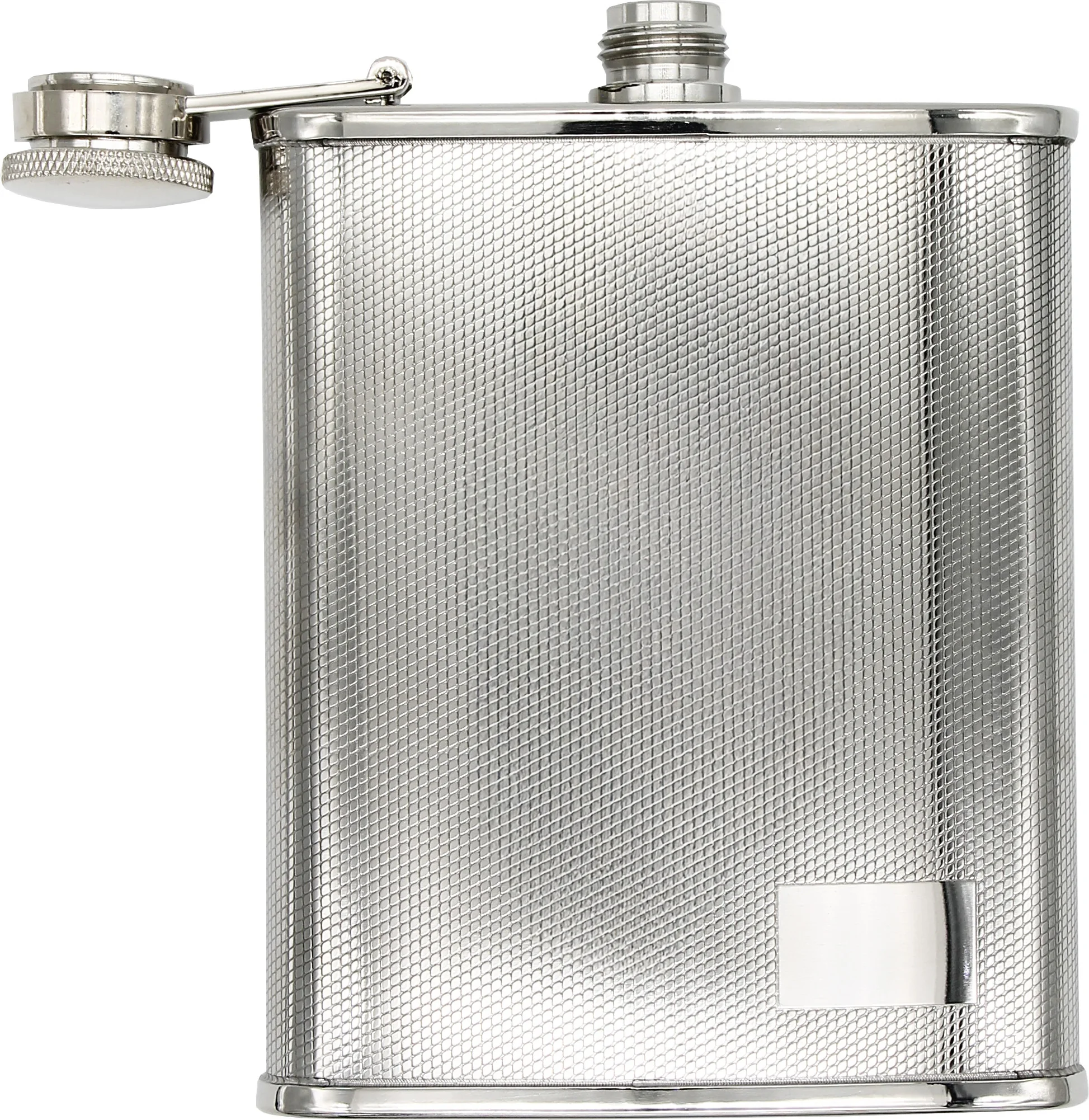 Dieser silberfarbene Flachmann verbindet eine funktionale Handhabung mit einem klassischen Erscheinungsbild. Das feine Rautenmuster verleiht dem Edelstahl-Flachmann eine dezente Struktur und sorgt zugleich für eine angenehme Haptik. Mit seinem Fassungsvermögen von 180 ml eignet er sich ideal für unterwegs und lässt sich dank seiner kompakten Form problemlos transportieren.