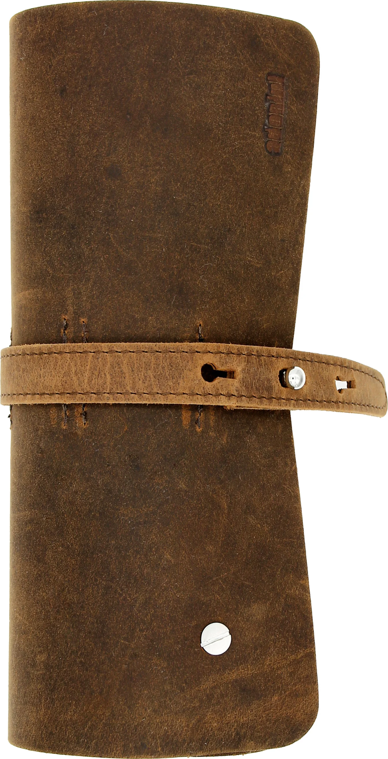 Cette création unique est fabriquée en cuir véritable b> qui offre une apparence rustique, bien portée, voire nostalgique, qui ne manquera pas de faire se demander quels trésors sont conservés à l'intérieur. Il suffit de défaire la fermeture de la sangle de protection en cuir et le boîtier s'ouvre facilement pour révéler des bandes élastiques pour fixer six de vos cigares préférés . Fermement mais pas trop serré, ces bandes tiendront une variété de formes et de tailles, de sorte que vous ne serez jamais pris sans le cigare idéal pour le travail.