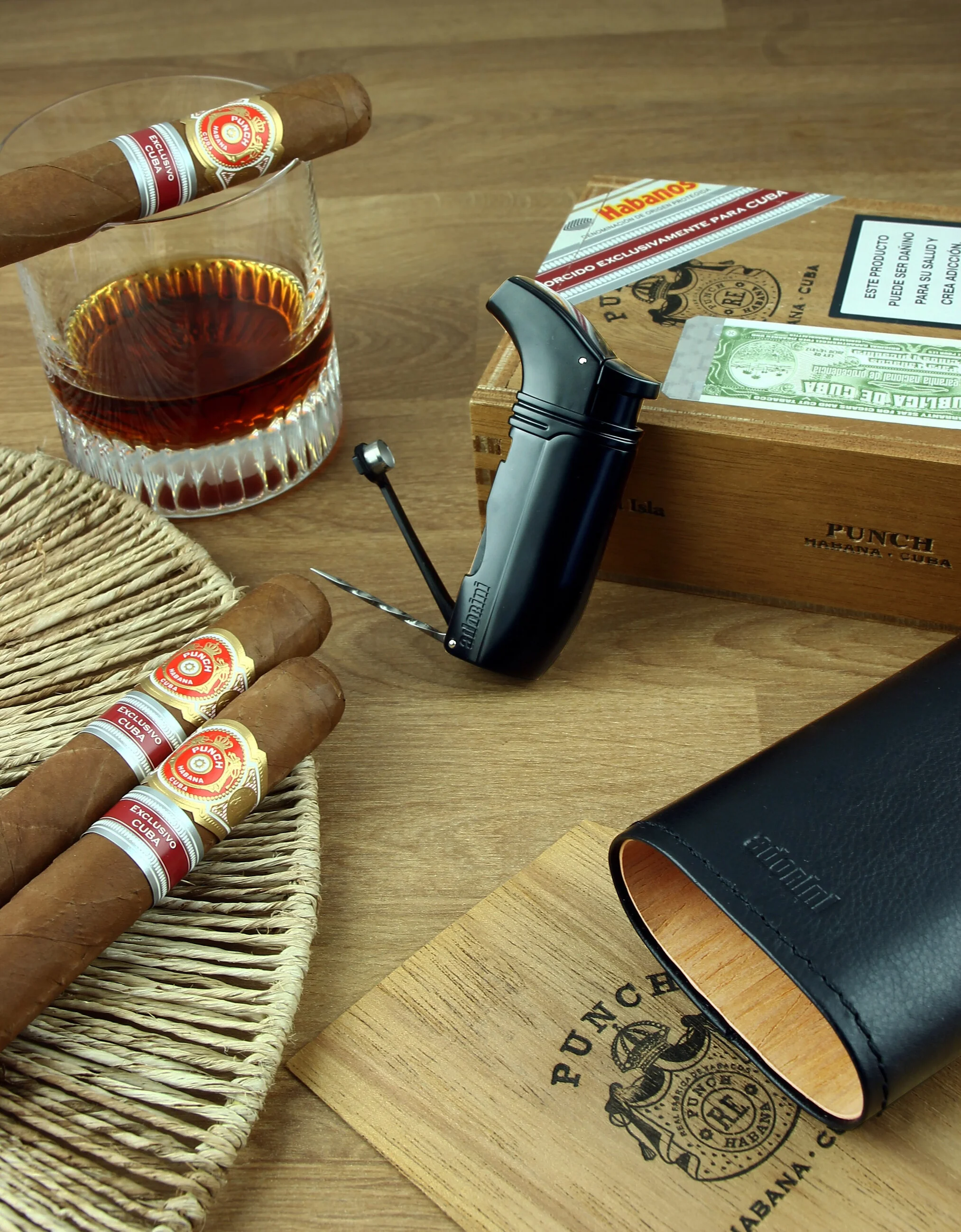 Élégant, noir et moderne, le briquet à jet double adorini Puroso offre une combinaison gagnante d'éclairage et de puissance de coupe qui assure une précision et un contrôle extraordinaires, peu importe où ou quand il est temps de déguster un bon cigare. Cette star du monde des accessoires pour cigares est vraiment un choix fantastique.