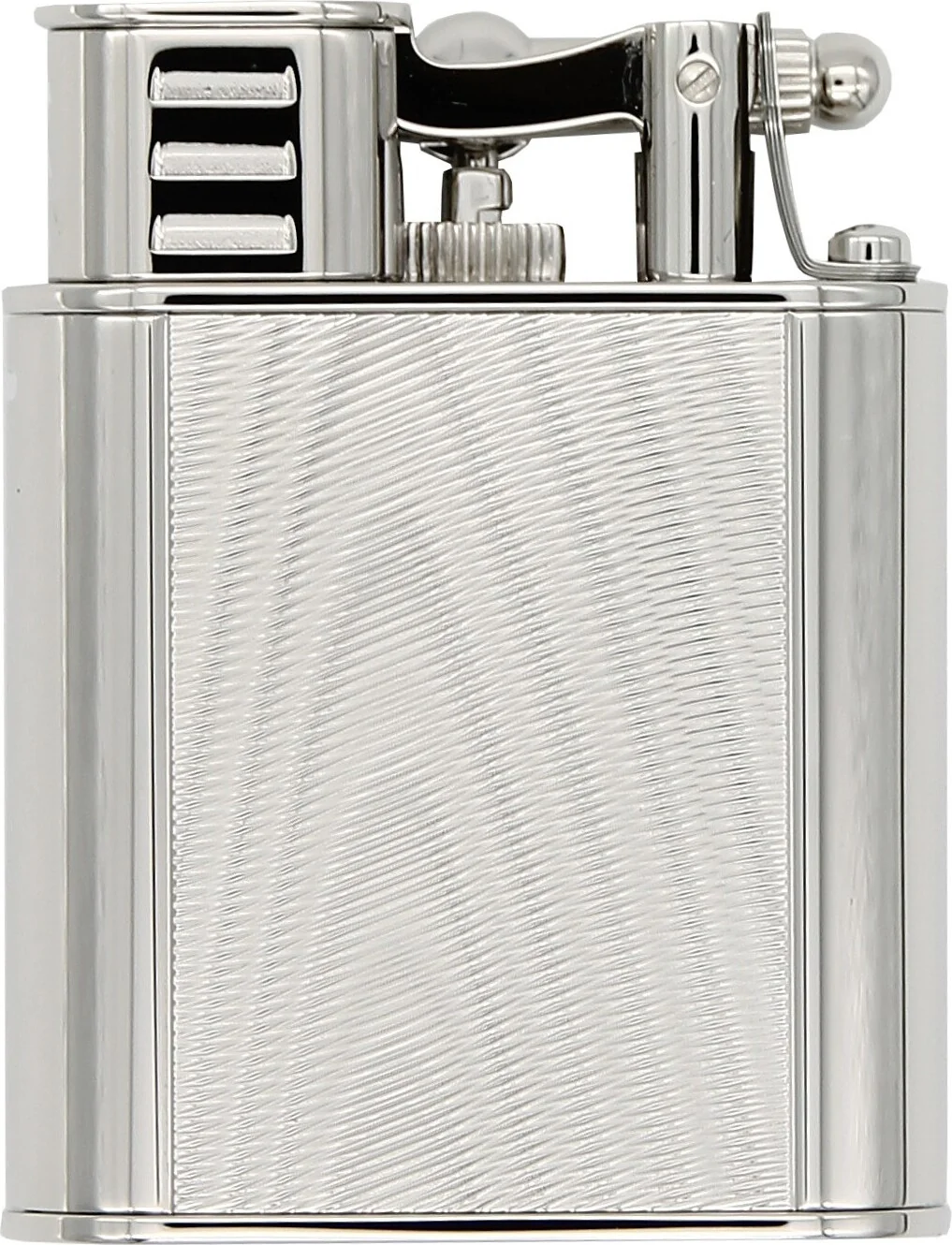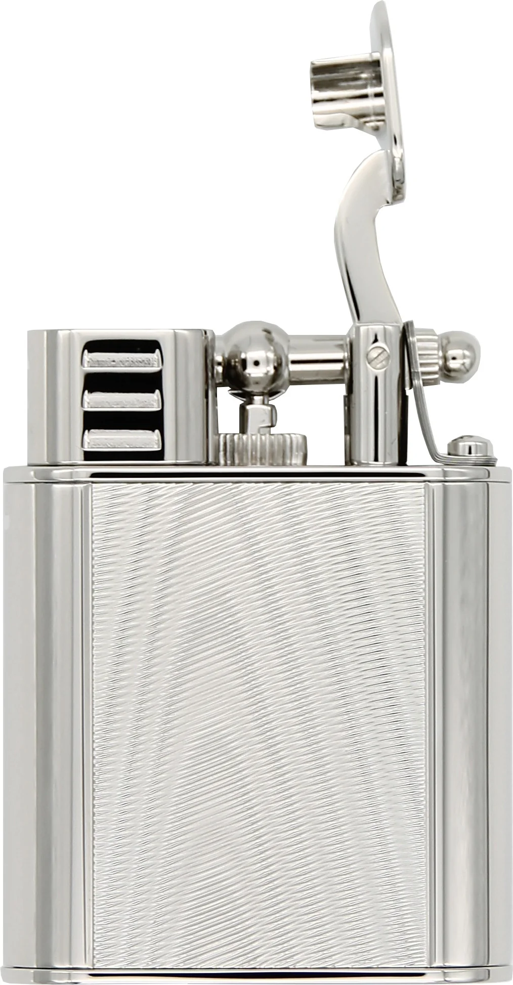 L'élégante combinaison du motif moiré et des surfaces brillantes crée un aspect général esthétique et fait du briquet un accessoire de style. Une trappe de protection protège le mécanisme d'allumage de la poussière et de la saleté. Dès que le volet est ouvert et que l'on appuie sur le levier situé derrière, une puissante flamme bleue se déploie.