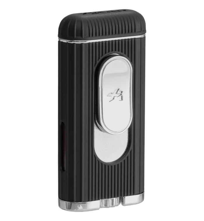 Xikar Jet Lighter Hedron en noir et argent est un briquet à jet moderne de la marque Xikar qui impressionne par son corps noir mat avec d'élégants éléments chromés. Ce puissant briquet coupe-vent offre une flamme de jet fiable, idéale pour les cigares. Le corps noir mat est doté d'un motif de lignes fines qui lui confère une structure supplémentaire. La gâchette de la flamme est marquée du logo Xikar et assure une utilisation confortable.