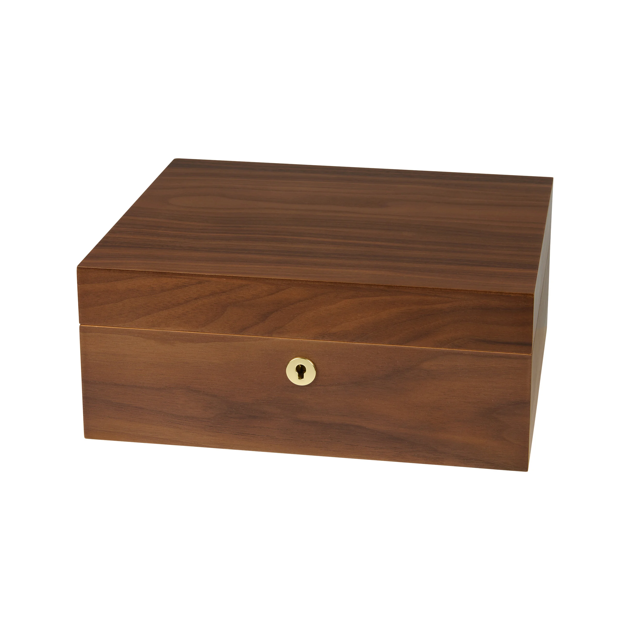 Le bois de noyer se distingue par son grain caractéristique aux tons chauds à brun foncé. Grâce à son aspect chaleureux et naturel, la cave s'intègre harmonieusement dans presque tous les environnements. Les caves de taille moyenne peuvent contenir jusqu'à 75 cigares, offrant ainsi suffisamment d'espace pour votre collection de cigares.