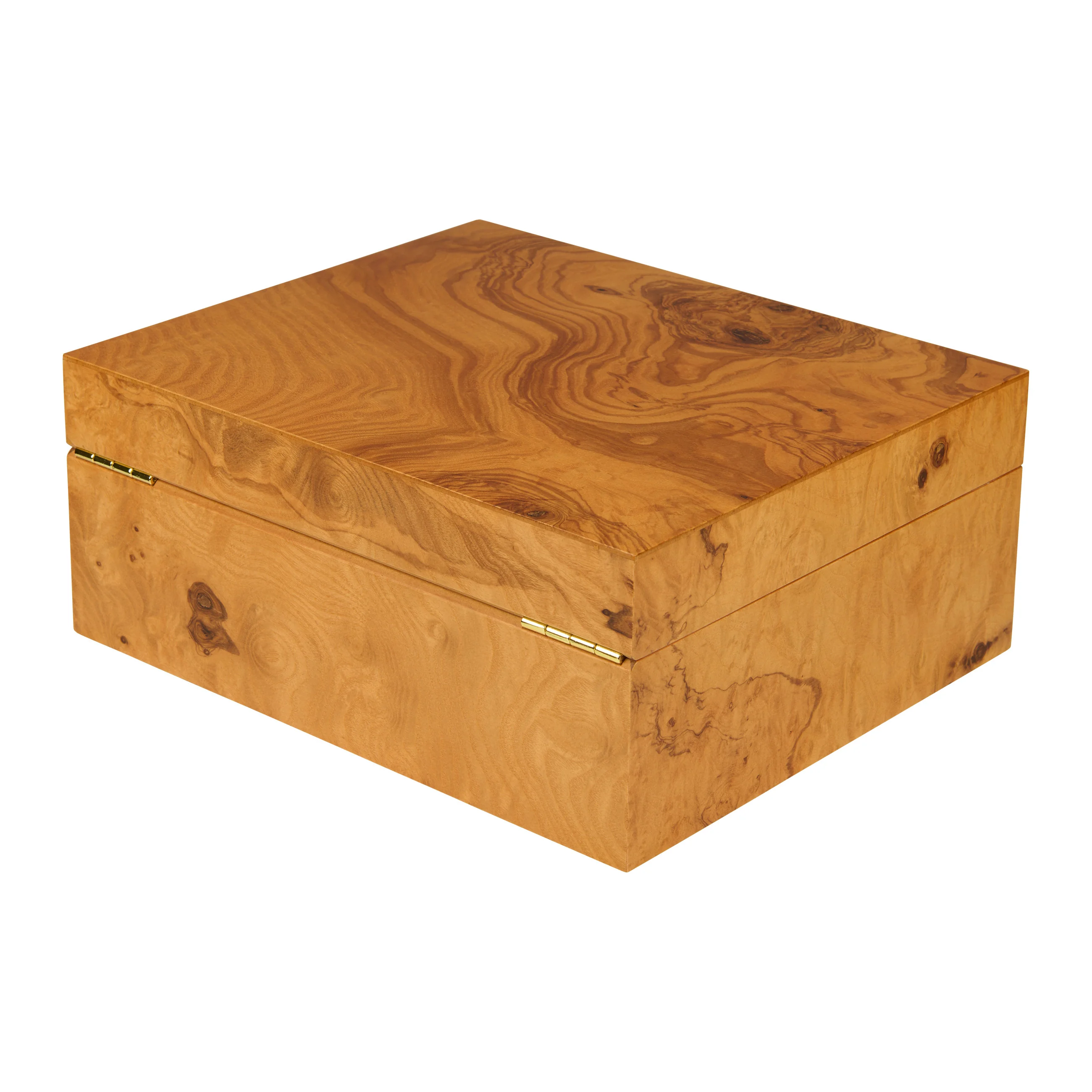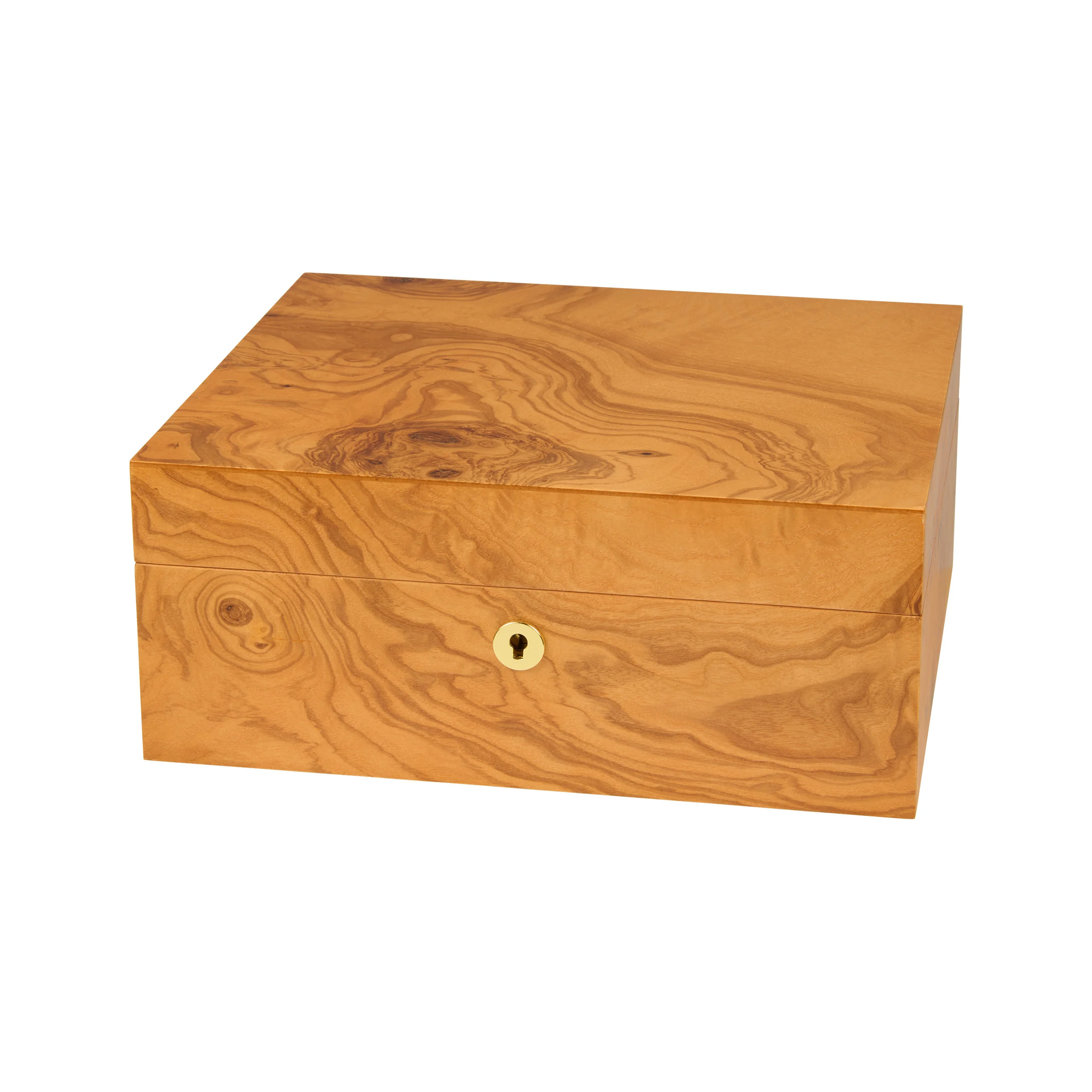 Le bois d'olivier séduit par son grain caractéristique aux tons jaune miel à brun doré, entrecoupé de veines sombres, presque chocolatées. Grâce à son aspect chaleureux, la cave s'intègre harmonieusement dans presque tous les environnements. Les caves de taille moyenne peuvent contenir jusqu'à 75 cigares, offrant ainsi suffisamment d'espace pour votre collection.