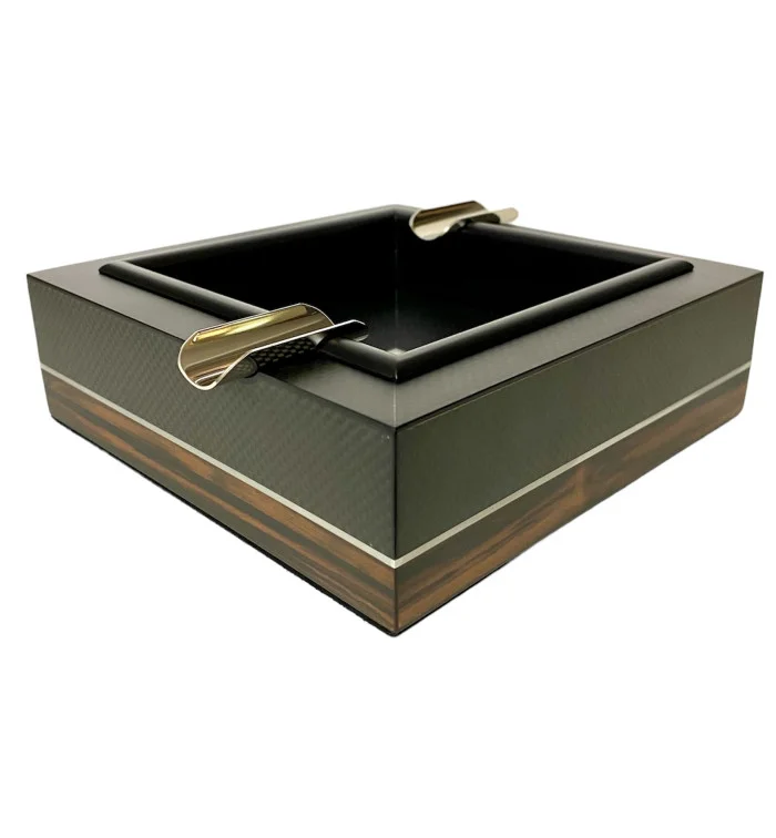 Le fond du cendrier est recouvert de feutre noir et porte le logo de la marque