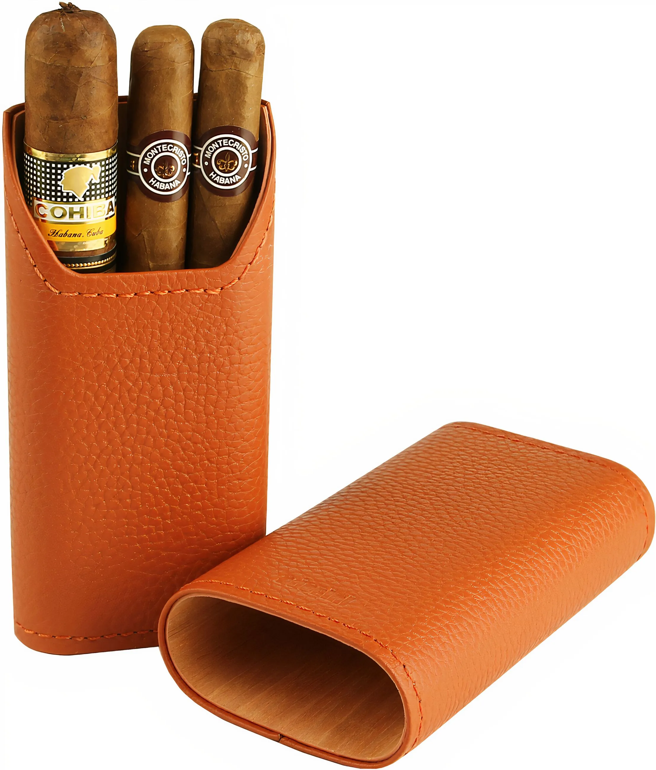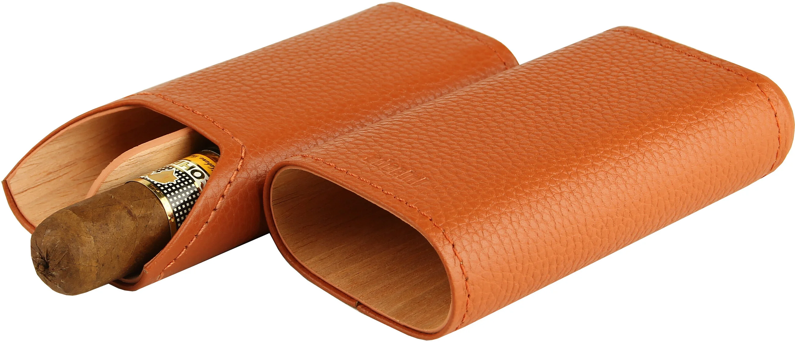 Étui à cigare adorini vrai cuir pour 2-3 cigares Crocus Orange