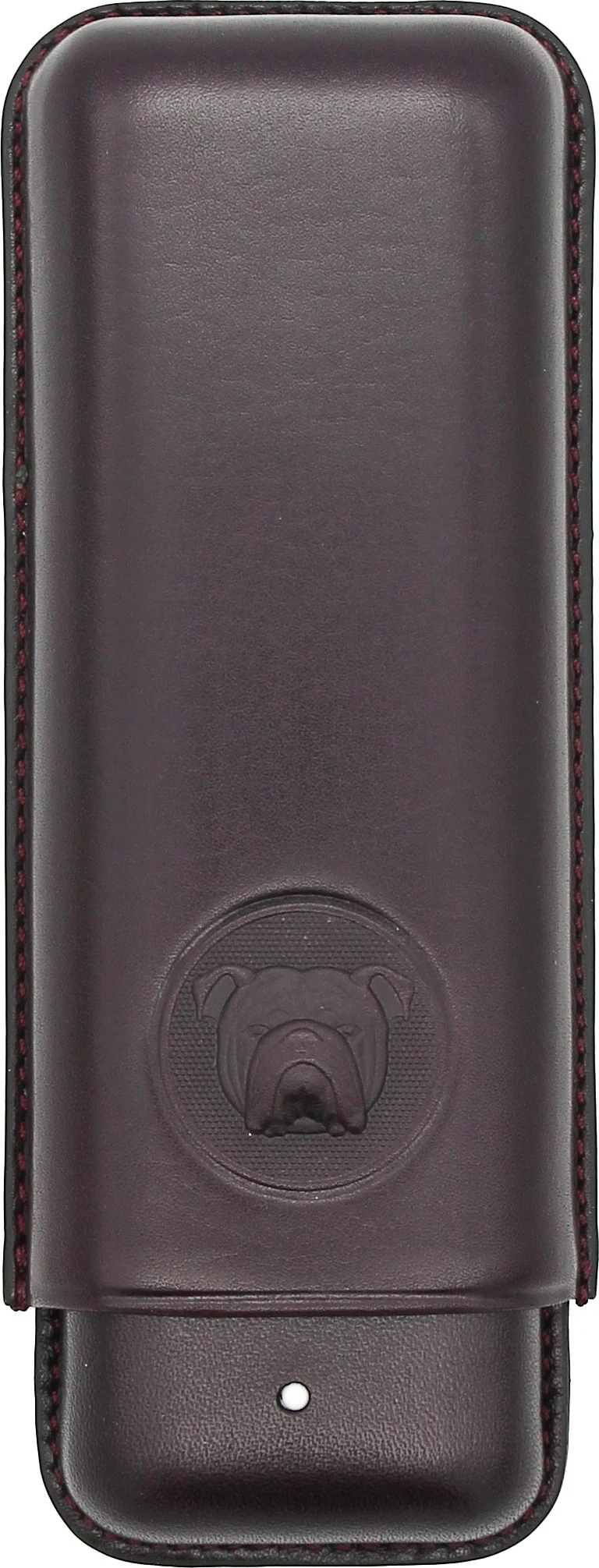 La face avant de l'étui présente le gaufrage en relief du Bulldog, complété par le célèbre "White Spot", signe distinctif de la marque Dunhill. De solides coutures décoratives sur l'extérieur complètent l'aspect sophistiqué de l'étui.