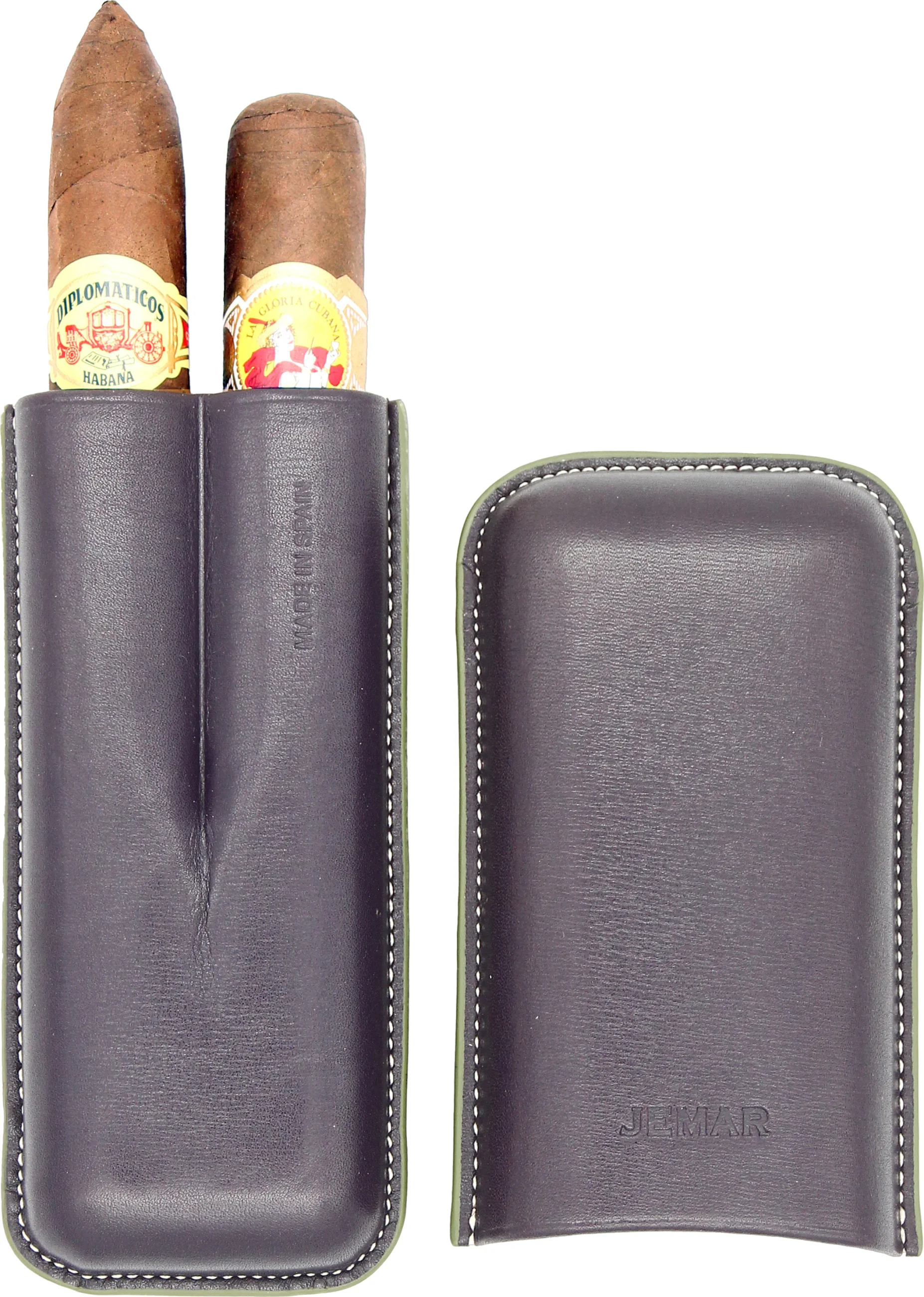 Étui à cigares double en cuir Jemar, avec bord vern 464/2.