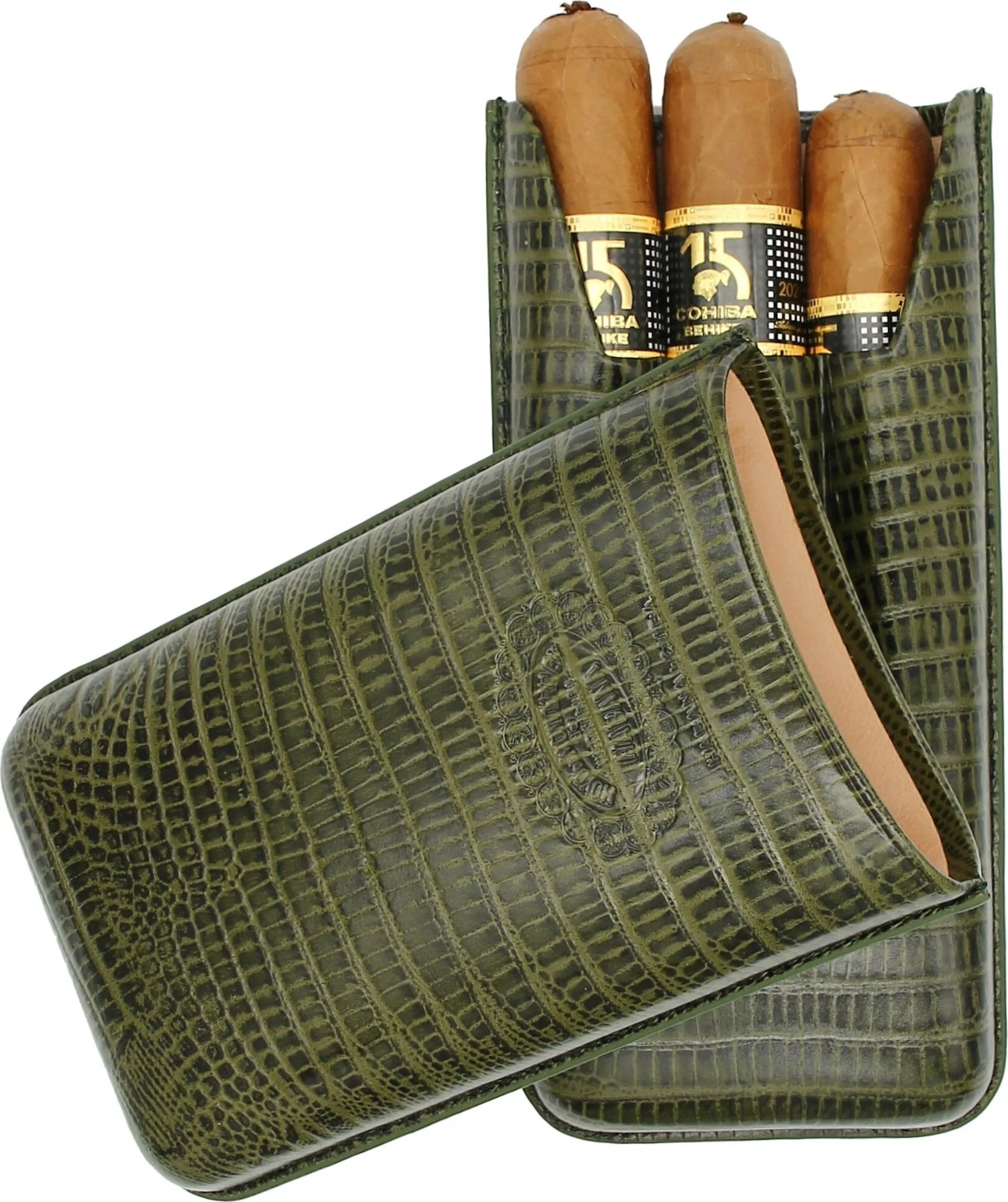 Étui à cigares 3 cigares Hoyo de Monterrey en cuir, Vert