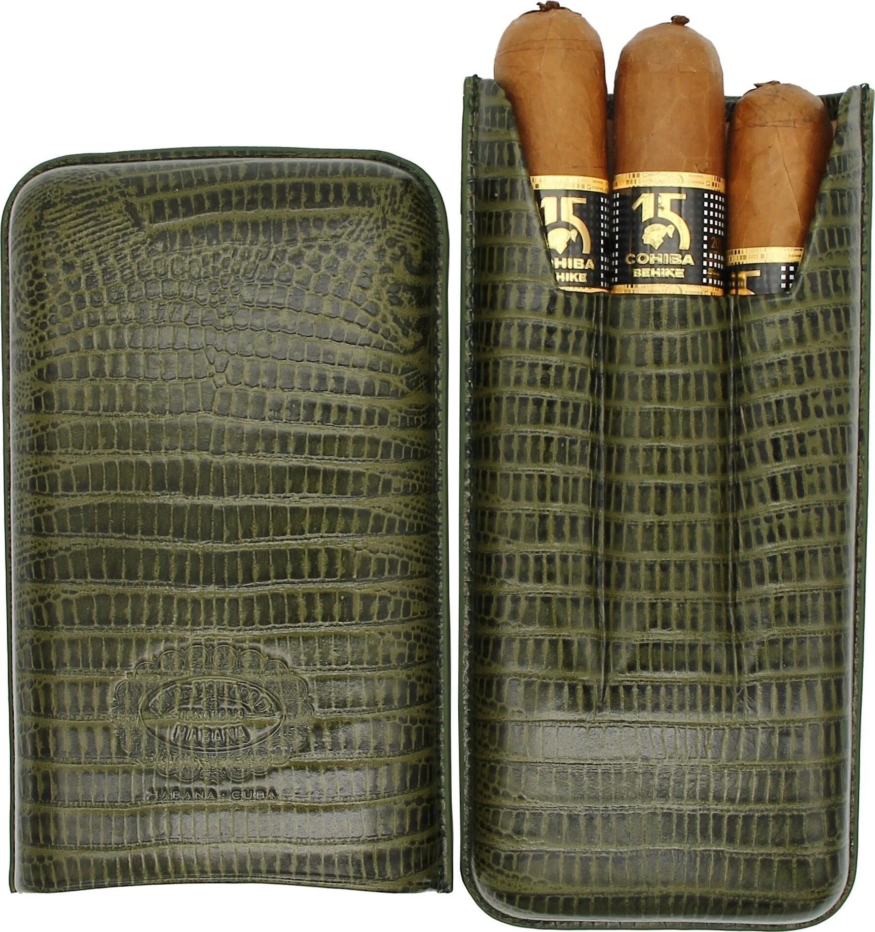 Étui à cigares Hoyo de Monterrey en cuir vert, 3 pièces.