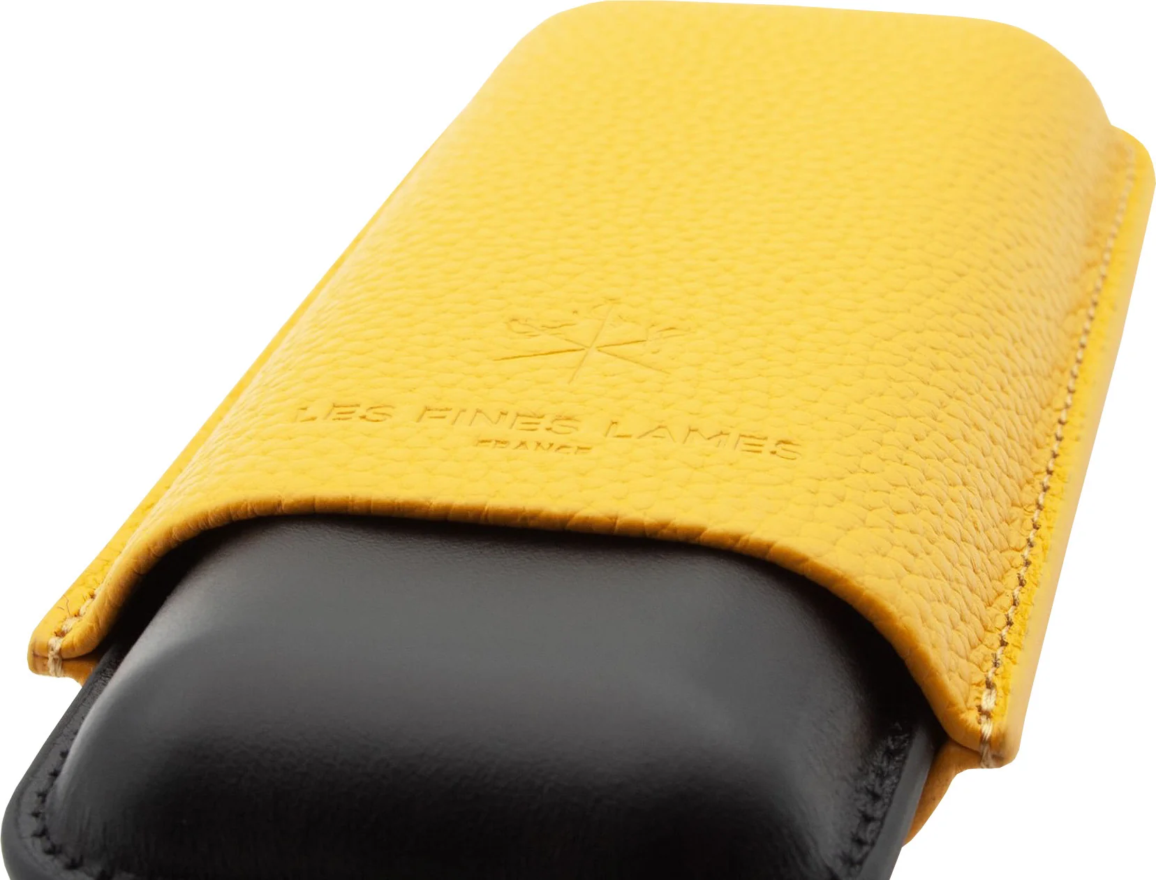 Élégant. Minimaliste. Fonctionnel. L'étui à cigares Les Fines Lames Duo, Jaune est un accessoire élégant de la jeune marque française Les Fines Lames, qui a acquis une renommée internationale principalement grâce à ses couteaux à cigares de haute qualité. Cet étui en deux parties combine le cuir véritable lisse et grainé pour créer un design subtil et élégant, idéal pour les aficionados exigeants.