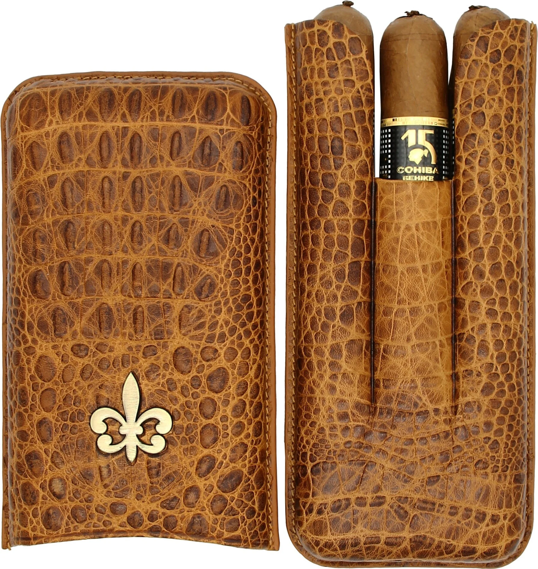 Étui à cigares Montecristo Fleur de Lis en cuir croco marron, 3 pièces.