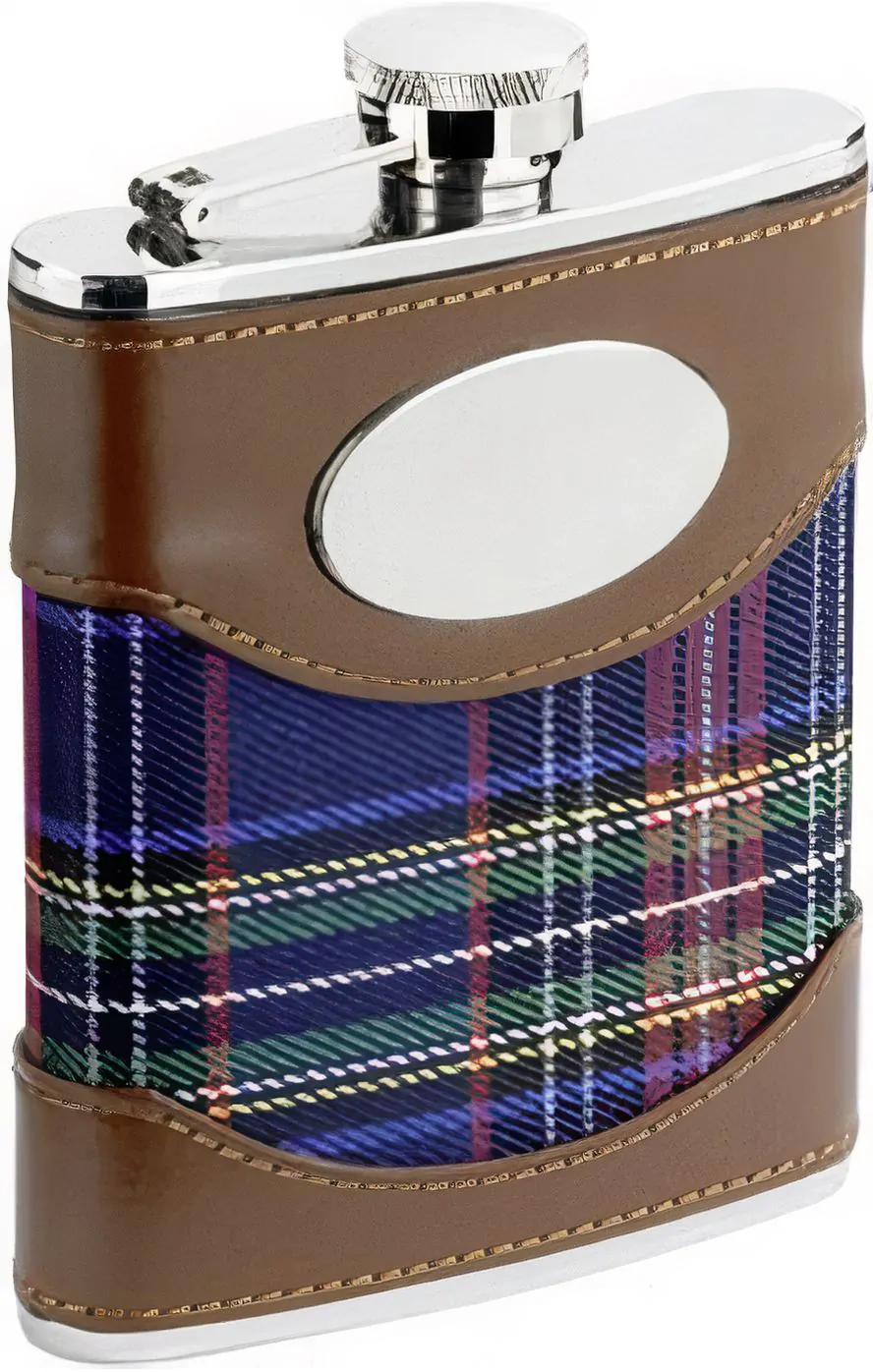 Flacon cuir/motif plaid avec plaque - possibilité de gravure