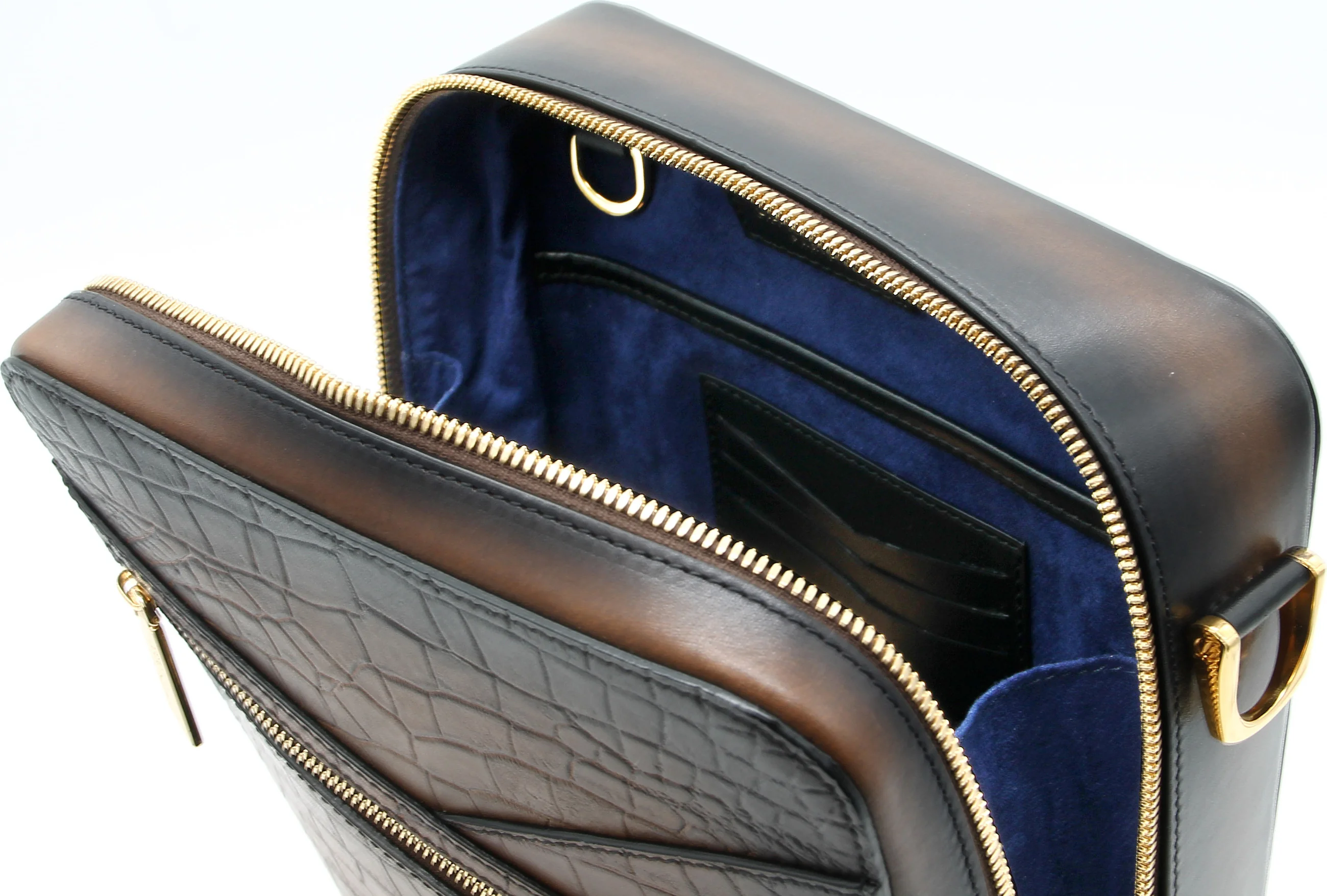 - Fabriqué à partir du meilleur cuir italien avec un aspect crocodile gaufré.