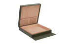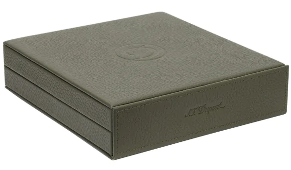 S.T. Dupont Cave à cigares de voyage Kaki est une élégante cave de voyage pour cigares de la marque de luxe française S.T. Dupont. Cette cave de voyage est recouverte sur tous les côtés extérieurs du cuir souple le plus fin, de couleur kaki. Le "D" reconnaissable de la marque est embossé sur le dessus de la cave, tandis que le nom de la marque se trouve sur le devant. Derrière le nom de la marque se trouve un fermoir magnétique. Lorsque celui-ci est rabattu, la cave de voyage hermétique peut être ouverte, révélant le bois d'Okumé à grain fin à l'intérieur, qui possède d'excellentes propriétés d'humidité.