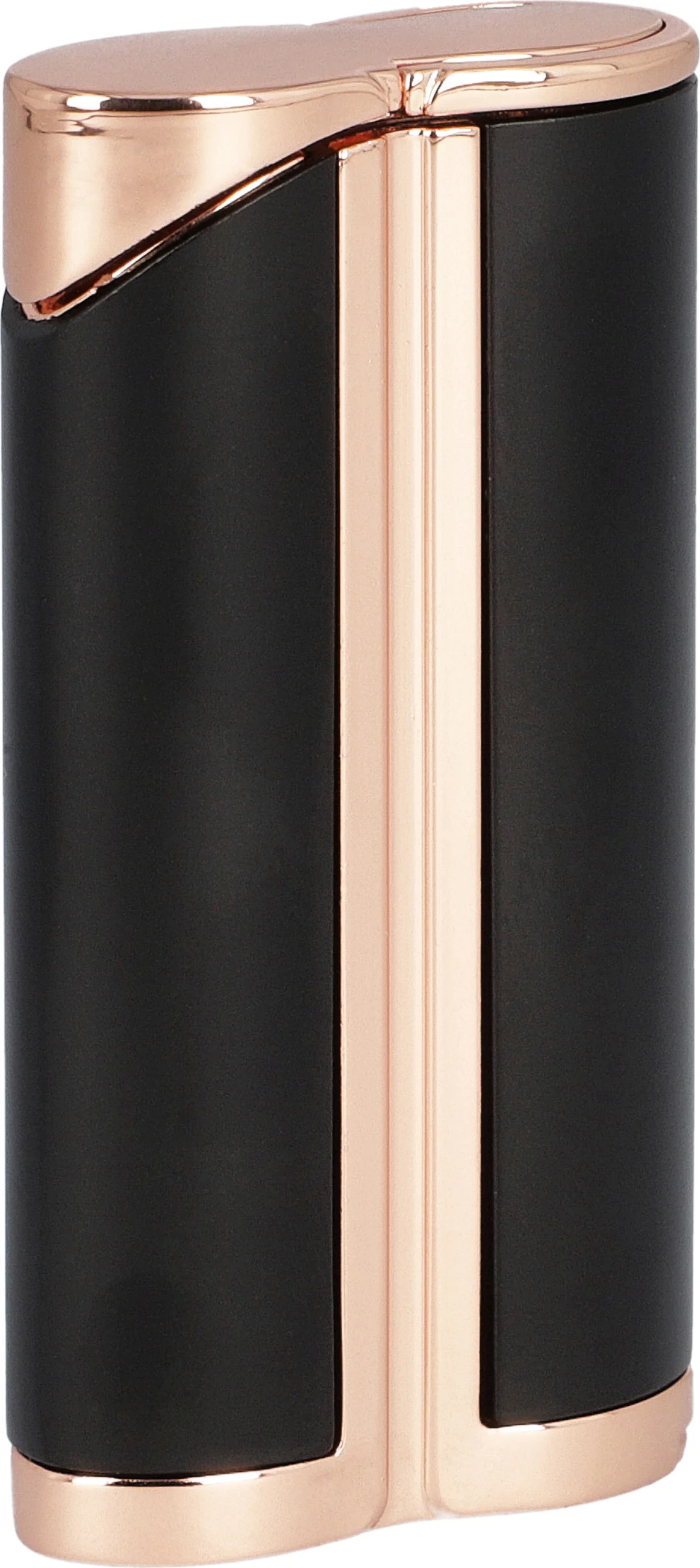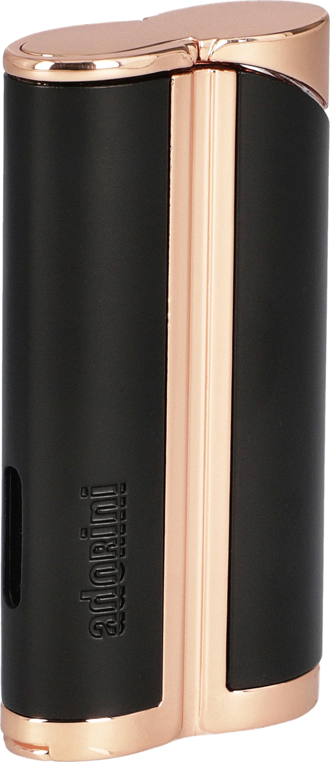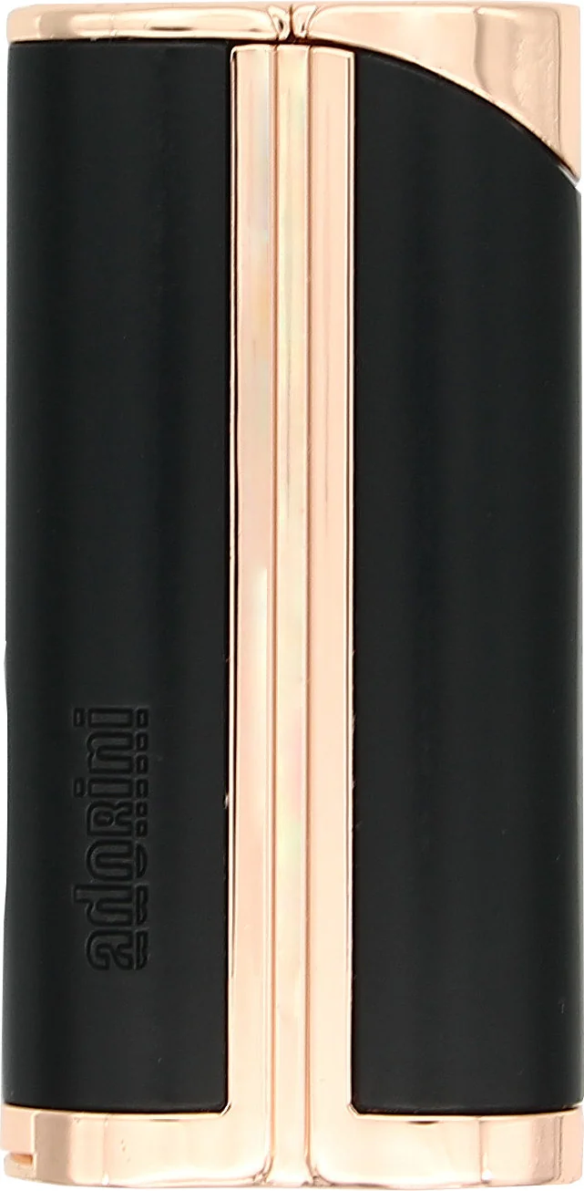 Accendino a Fiamma a Getto Singolo Curvo adorini Nero & Color Oro Rosato con Punzone per Sigari Integrato
