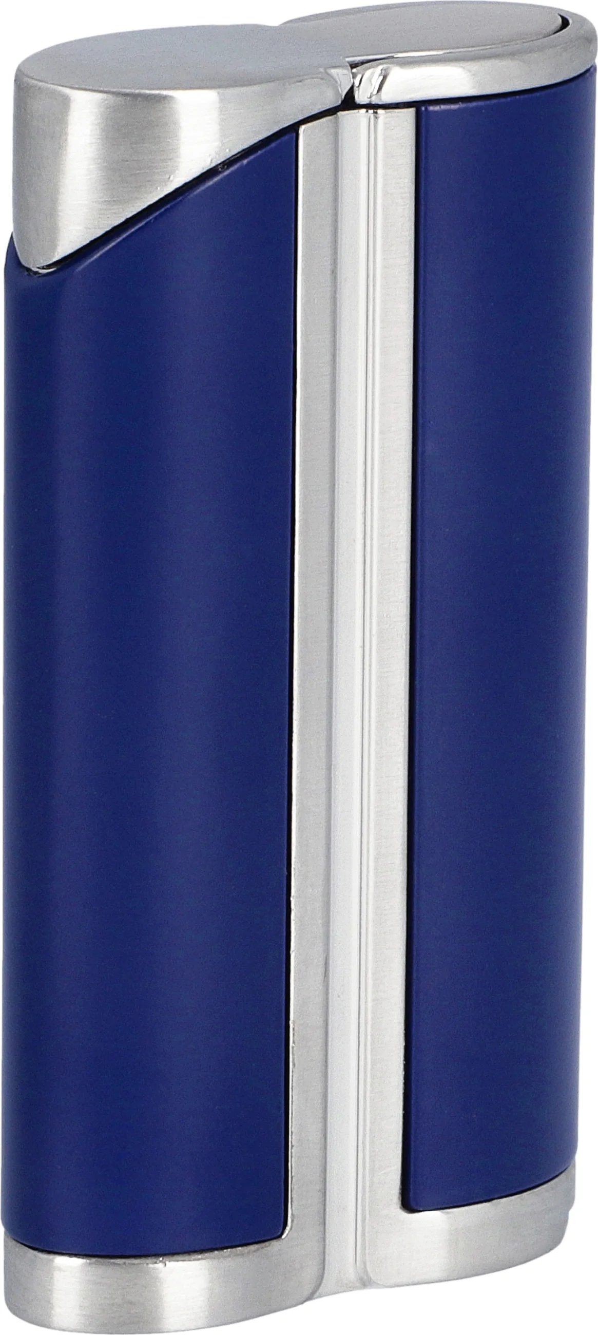 Accendino a Fiamma a Getto Singolo Curvo adorini Blu / Color Argento Satinato con Punzone per Sigari Integrato