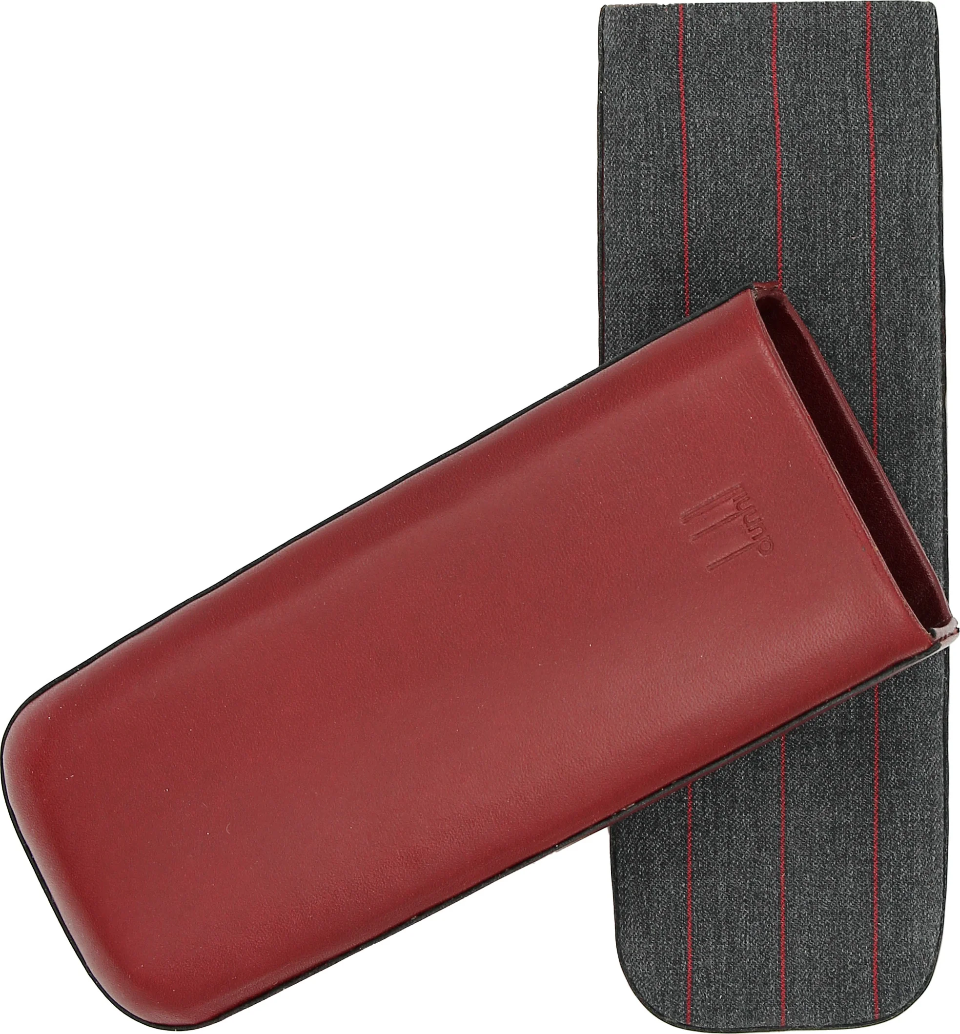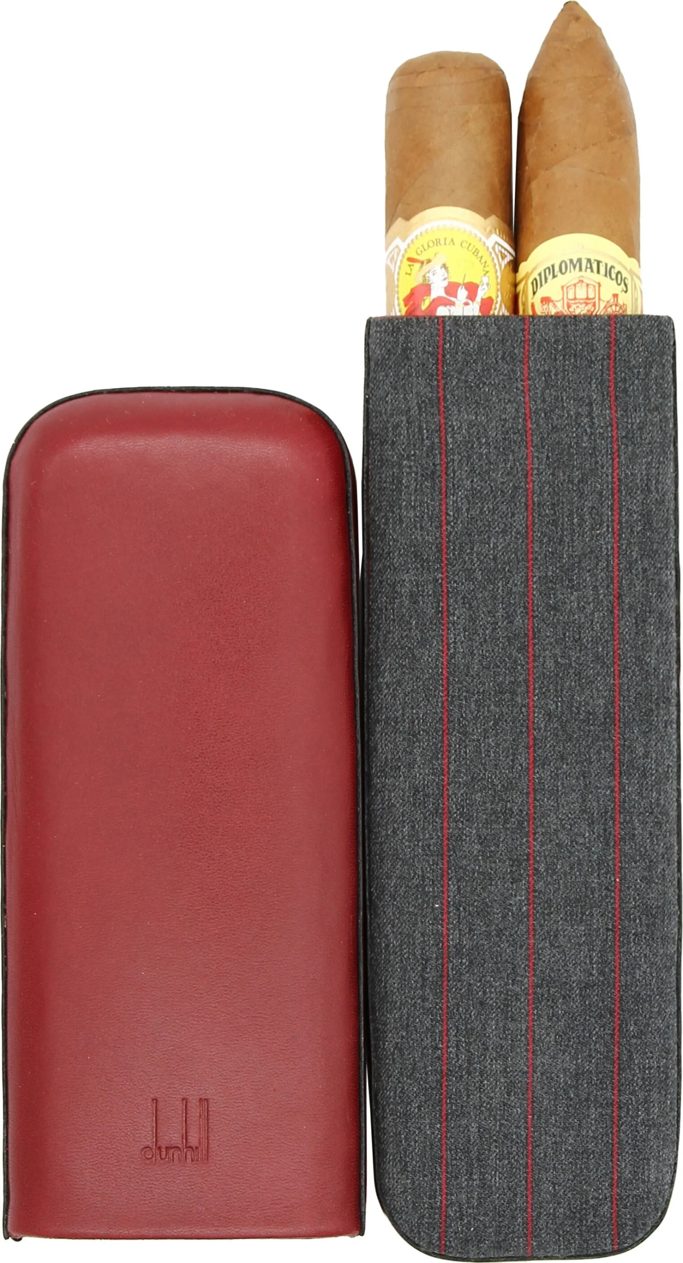 Questo portasigari scorrevole combina la migliore pelle rossa con una base in tessuto. Una combinazione eccezionalmente elegante, raramente vista nel mondo dei sigari. La parte anteriore presenta l'inconfondibile marchio Dunhill in rilievo.