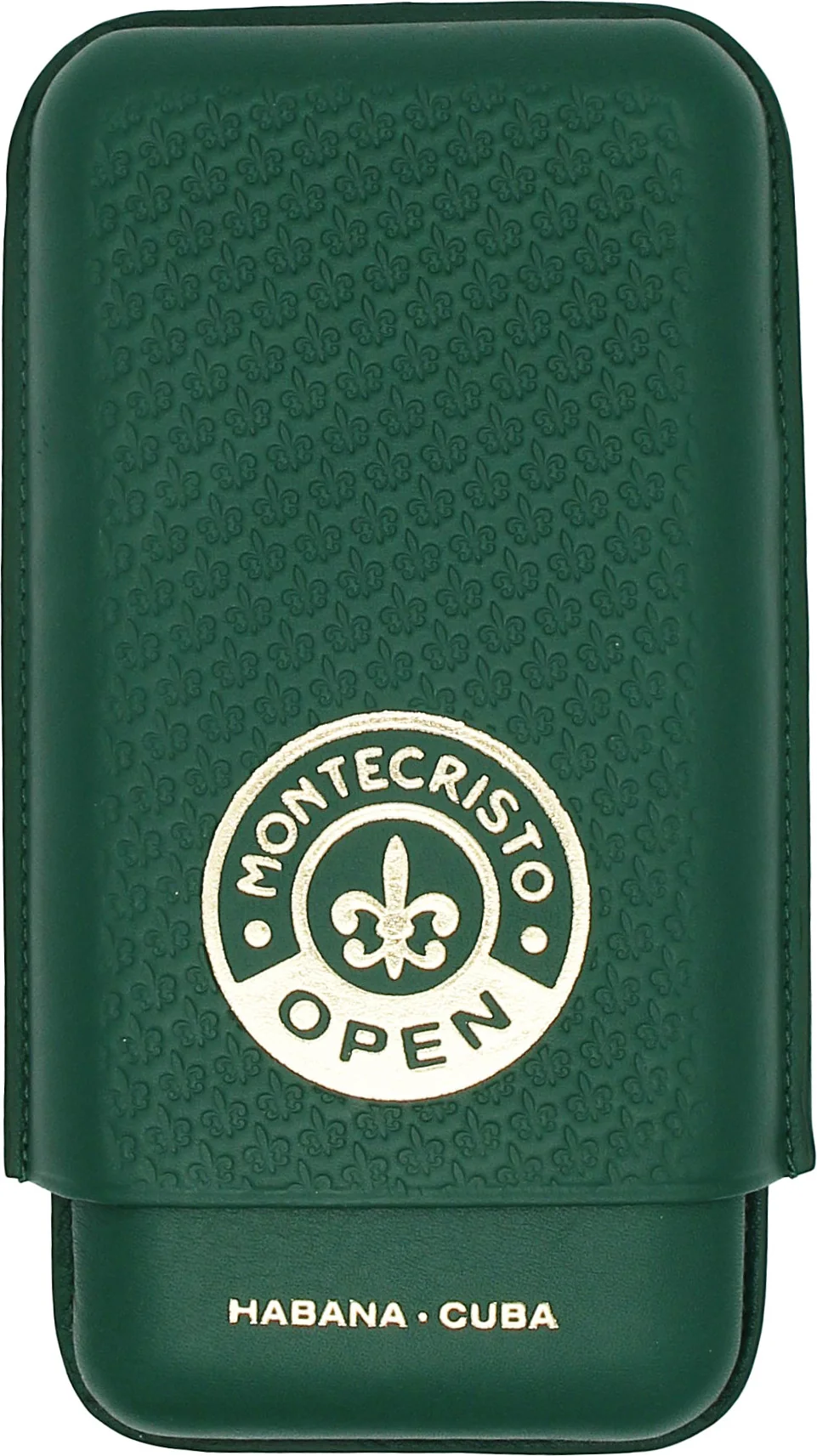 L'astuccio per sigari Montecristo di colore verde sportivo è un accessorio di lusso della marca di sigari cubani Montecristo, progettato specificamente per la linea Open, più mite. La superficie in pelle finemente strutturata con il simbolo del fleur-de-lis in rilievo trasmette un aspetto autentico e di alta qualità. Il logo in rilievo del marchio, inconfondibilmente Montecristo, adorna la parte anteriore, conferendo all'astuccio un'aria esclusiva.