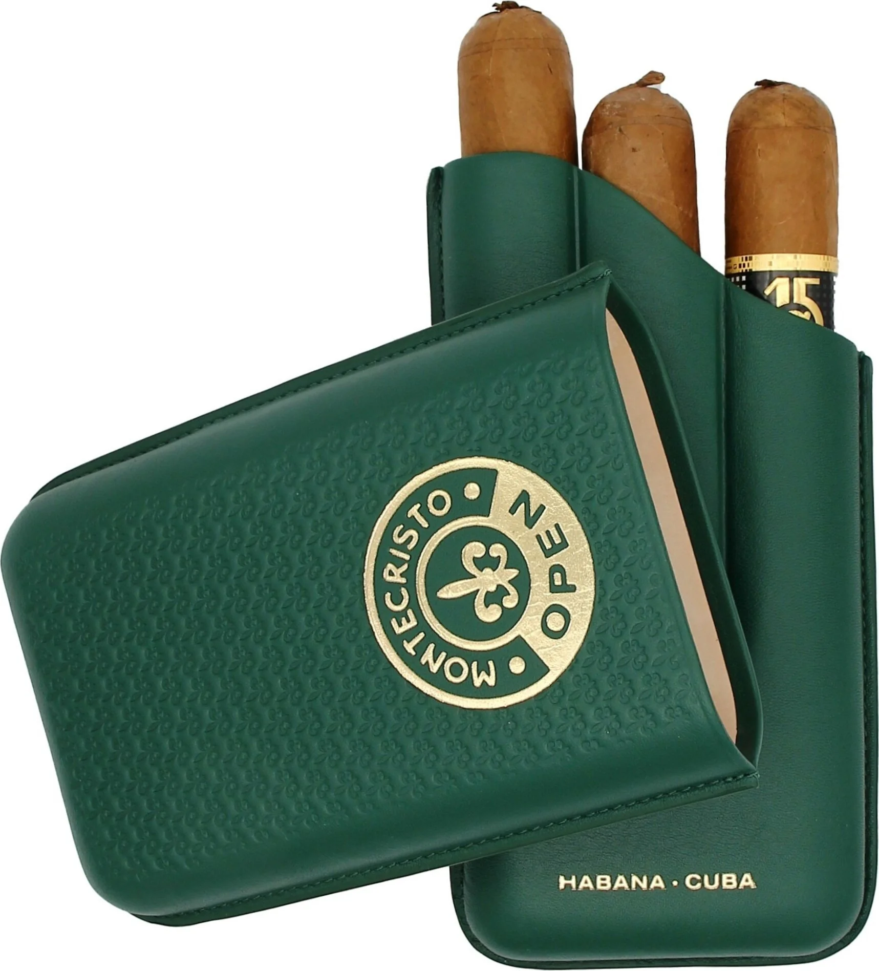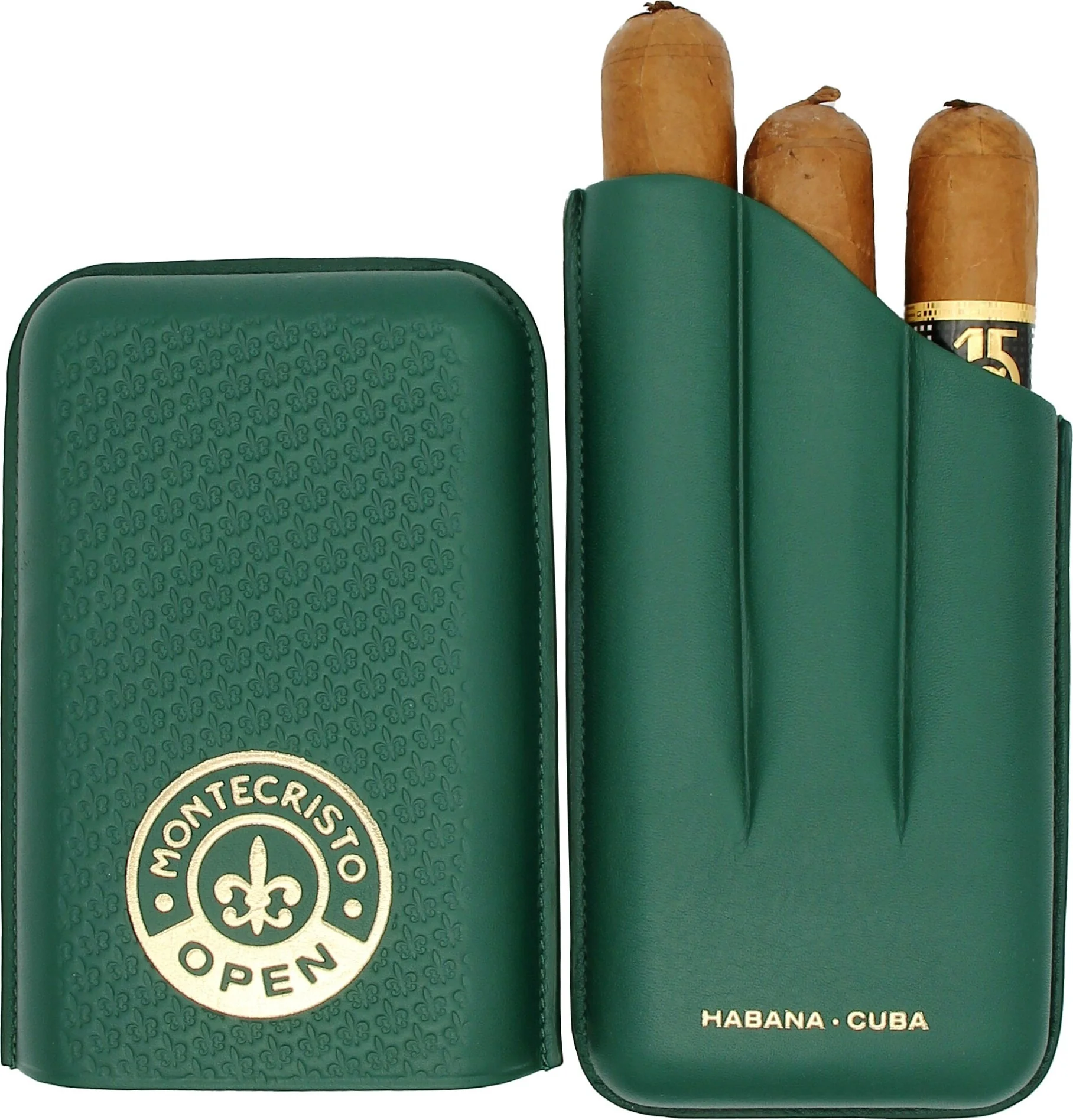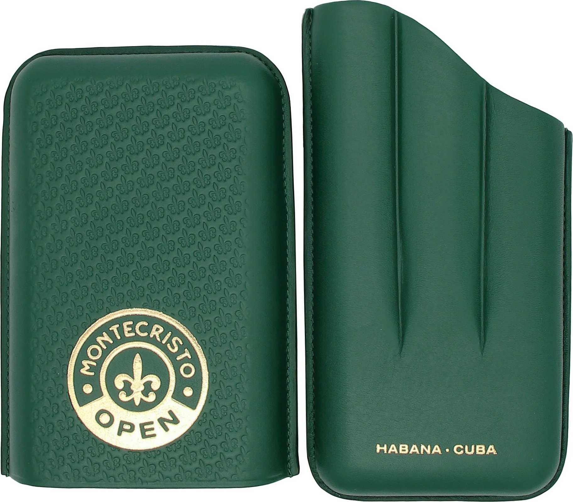 Custodia per sigari aperta in pelle Montecristo, verde, per 3 sigari