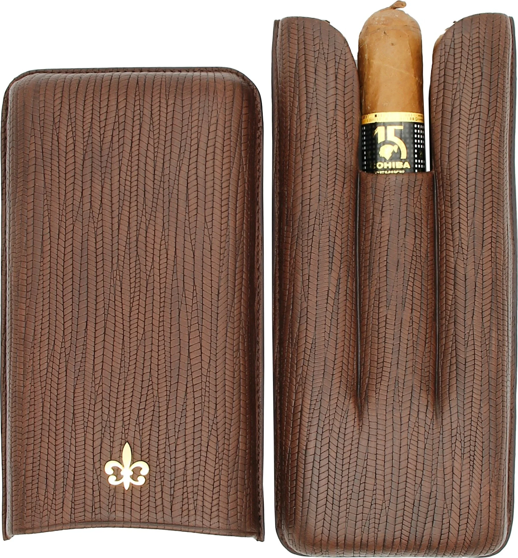 Custodia per Sigari Montecristo Fleur de Lis in pelle, marrone, per 3 sigari