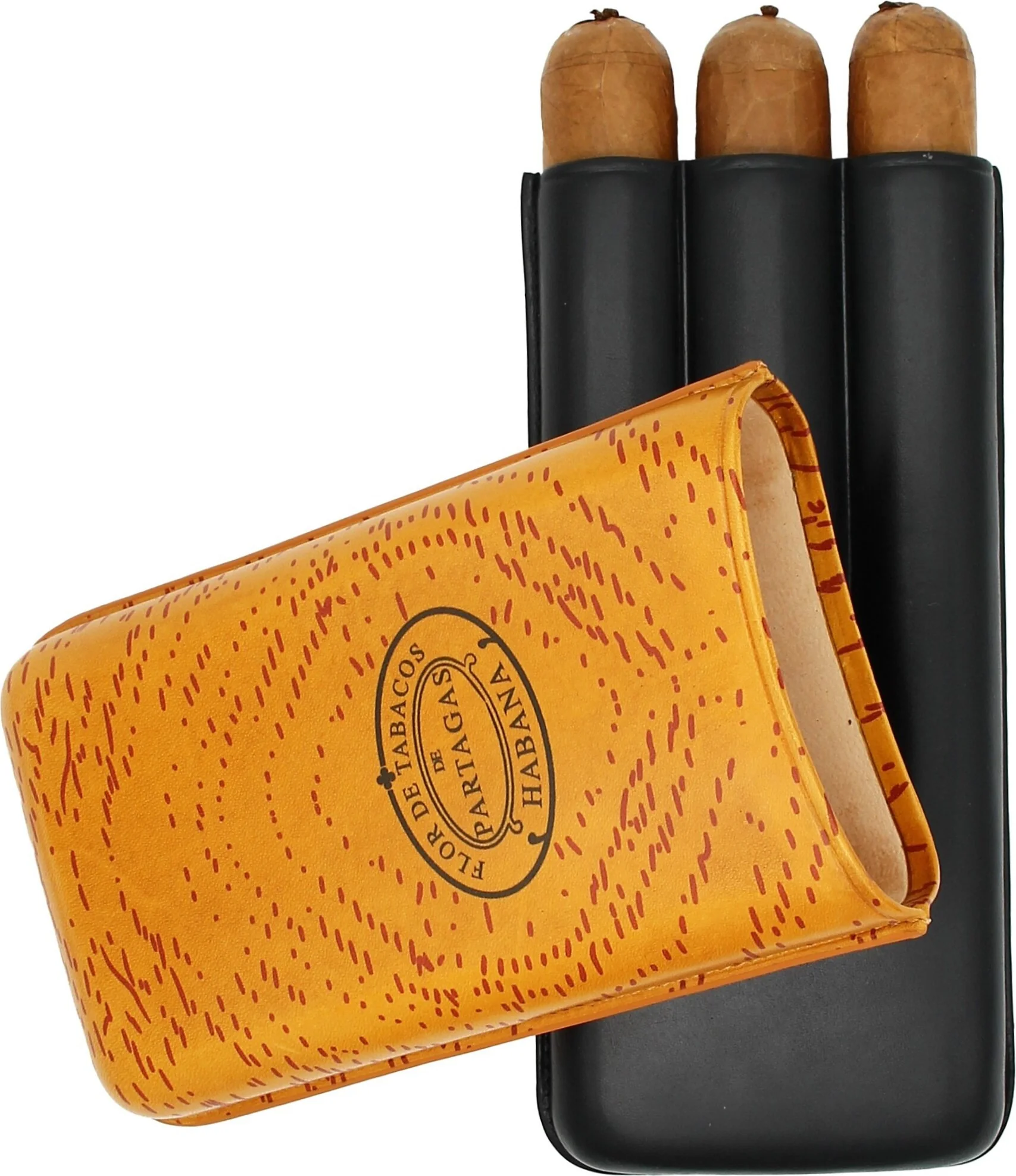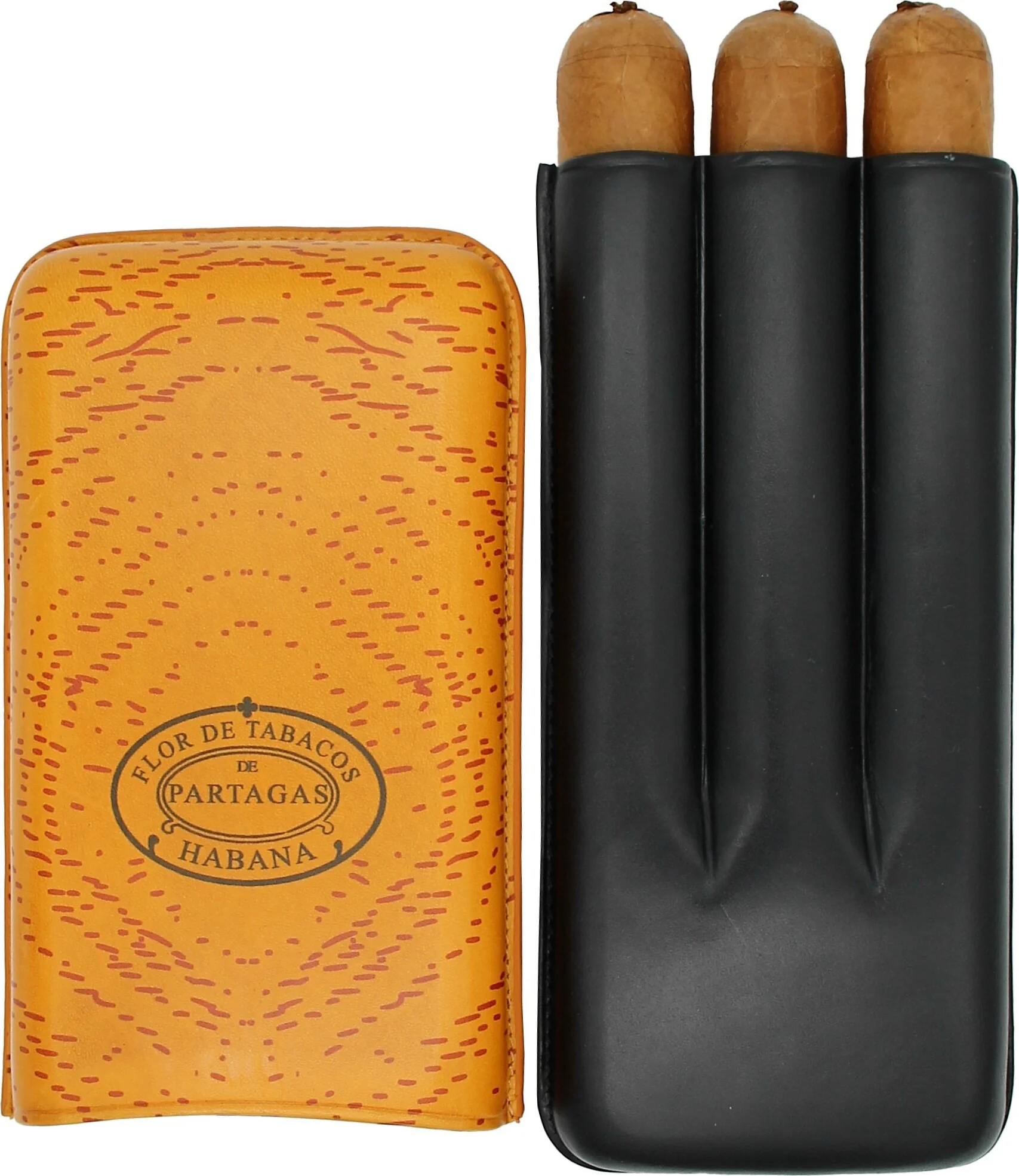 Custodia per Sigari Partagas Classic in pelle arancione e nera 3 pezzi.