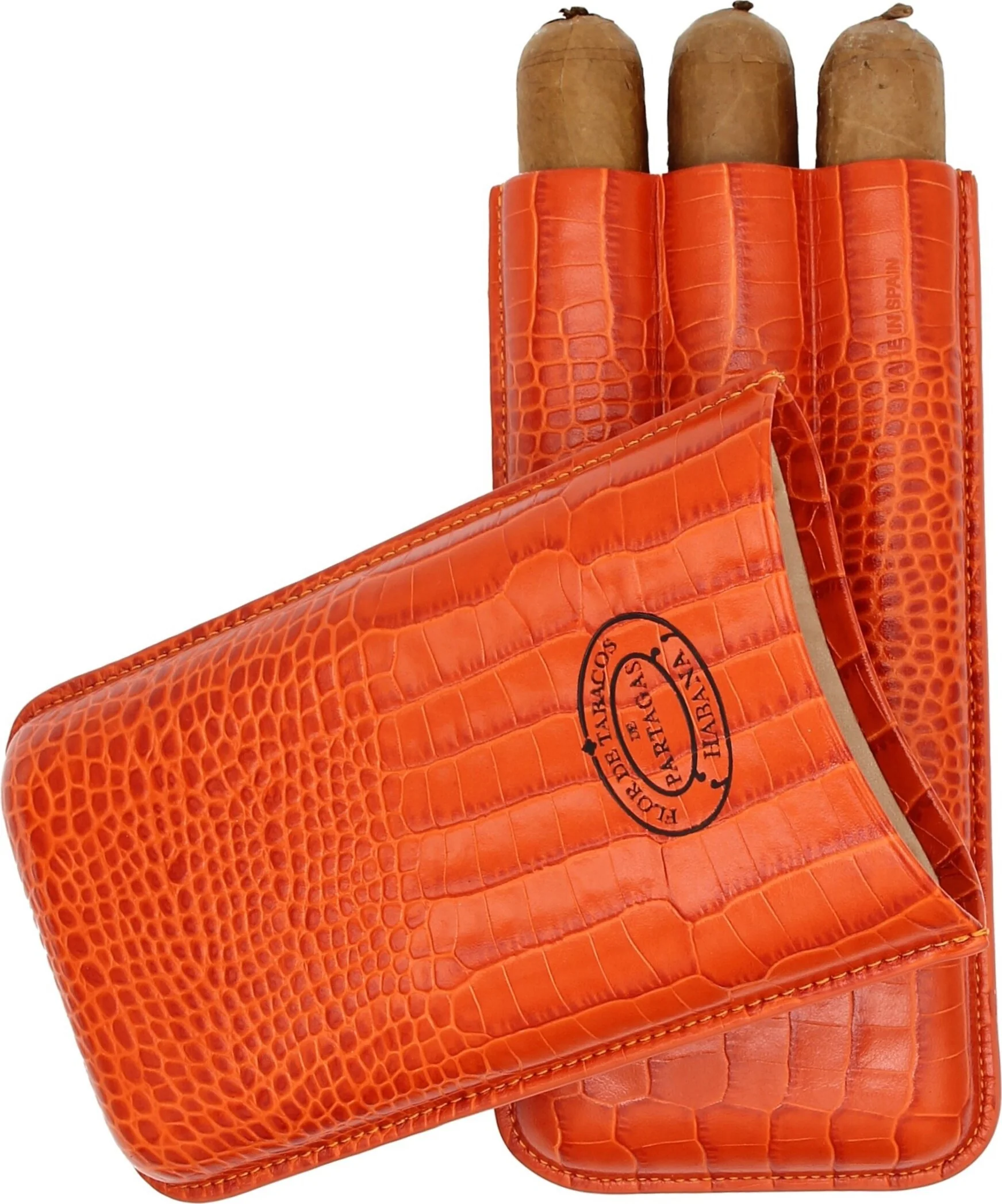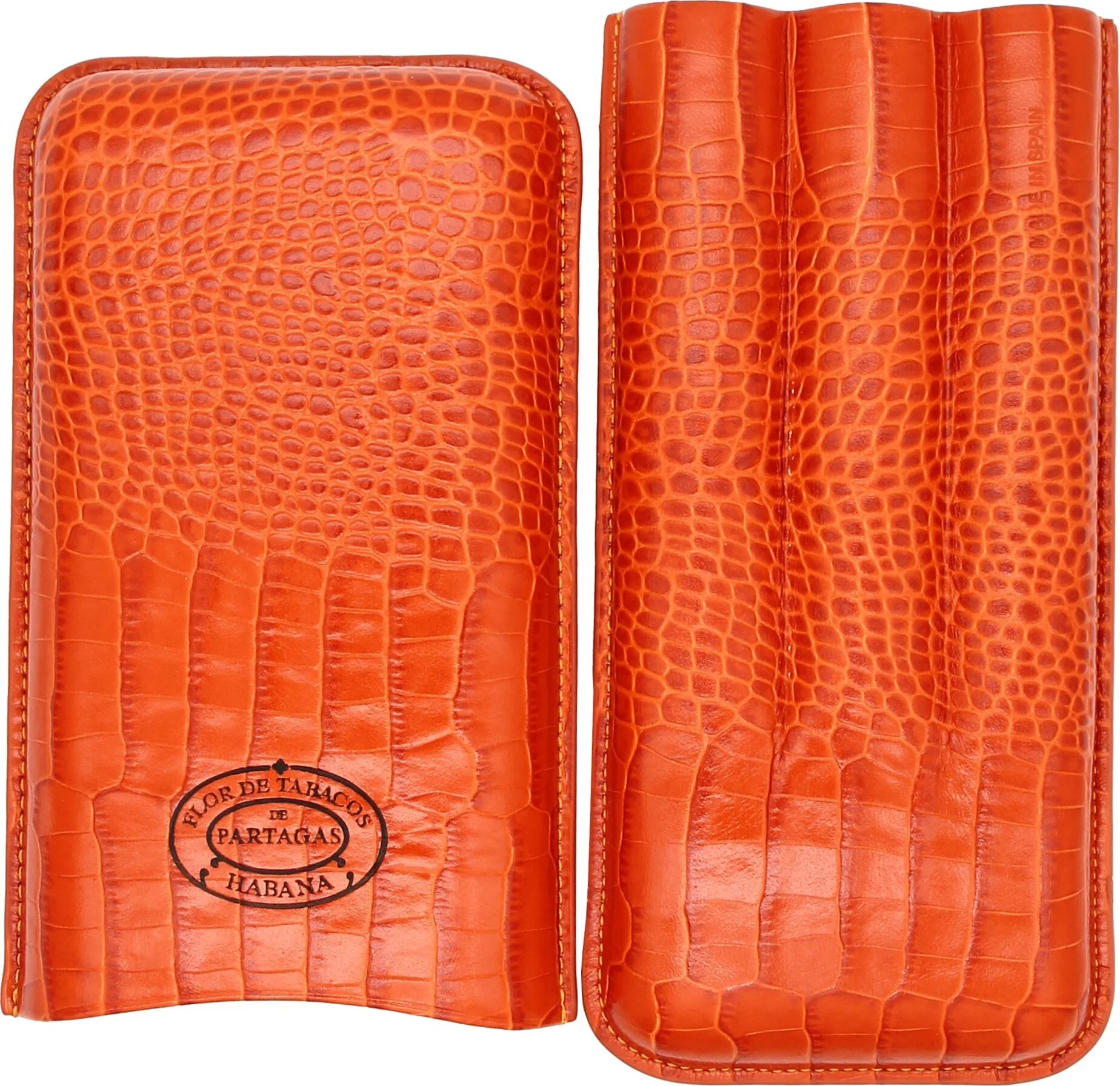 Custodia per Sigari Partagas Linea Classic in pelle arancione 3 pezzi.