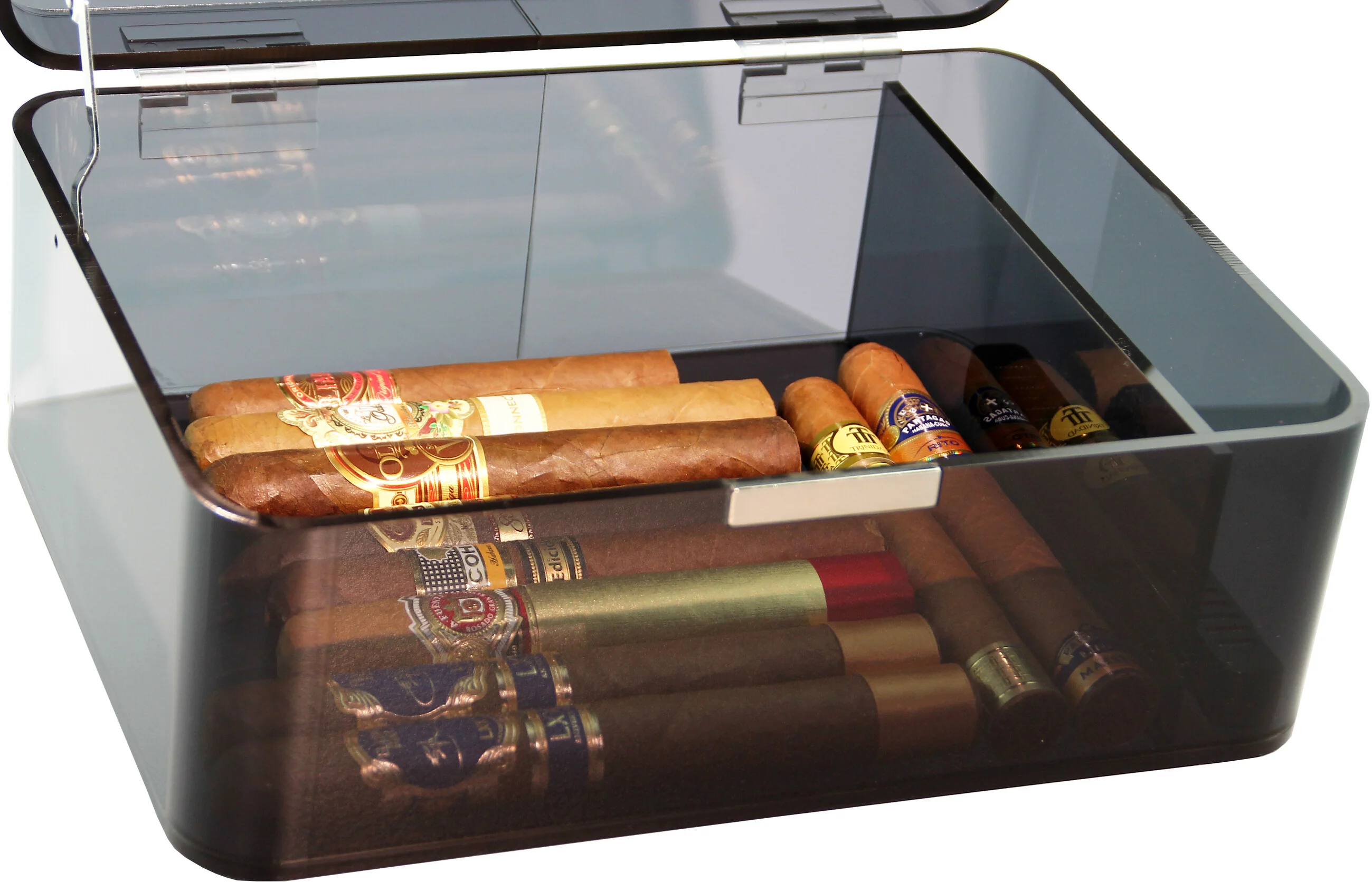 Questo humidor in acrilico combina estetica e funzionalità ed è la scelta perfetta per chi apprezza il design moderno e la conservazione ottimale dei sigari.