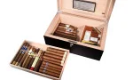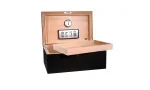 Questo humidor per sigari offre un ottimo rapporto qualità-prezzo. Sono rimasto piacevolmente sorpreso dalle sue dimensioni, che possono contenere facilmente 70-90 sigari. Il ripiano ti permette di aggiungere un ulteriore livello in modo da poter riporre altri sigari sul fondo senza doverli maneggiare inutilmente. Grazie ai divisori in cedro, puoi anche riporre i sigari separatamente.