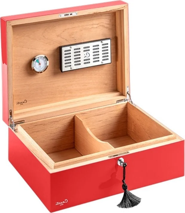 L'Humidor Caseti Paris Rosso è un sofisticato humidor del marchio francese Caseti, che cattura immediatamente l'attenzione con la sua finitura rossa brillante e lucida. La serie Paris rappresenta un design eccezionale e si distingue nettamente dai classici humidor in legno impiallacciato che si vedono spesso.