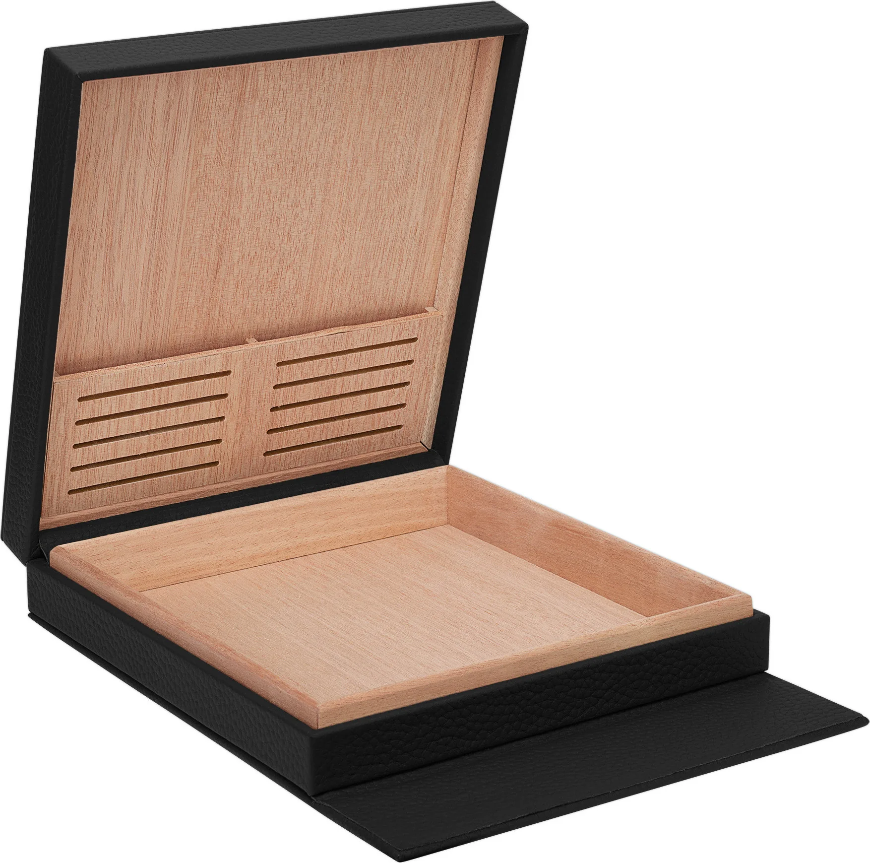 L'humidor da viaggio ha una capacità di 8-10 sigari, a seconda delle dimensioni. Le dimensioni esterne sono 21 x 19,5 x 5,5 cm, quelle interne 17,5 x 18 x 2,5 cm.