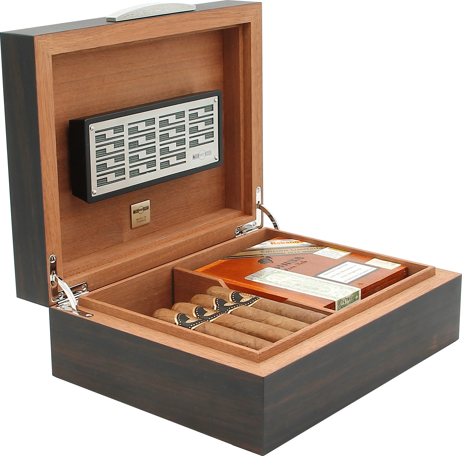 L'humidor è stato realizzato per Dunhill in Francia, come conferma una targa all'interno.