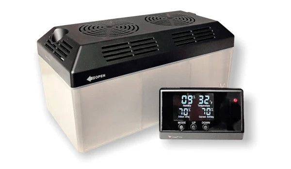 Hai a portata di mano il potere dell'umidificatore robusto con un'unità di controllo separata conlettura digitale LCD retroilluminato. Vengono visualizzati il livello di umidità e la temperatura correnti, nonché una media di 3 giorni per ciascuno e gli alti e i bassi durante quel periodo. Questo ti offre una visione eccezionale delle condizioni reali dei tuoi sigari e della funzionalità generale dell'umidificatore.