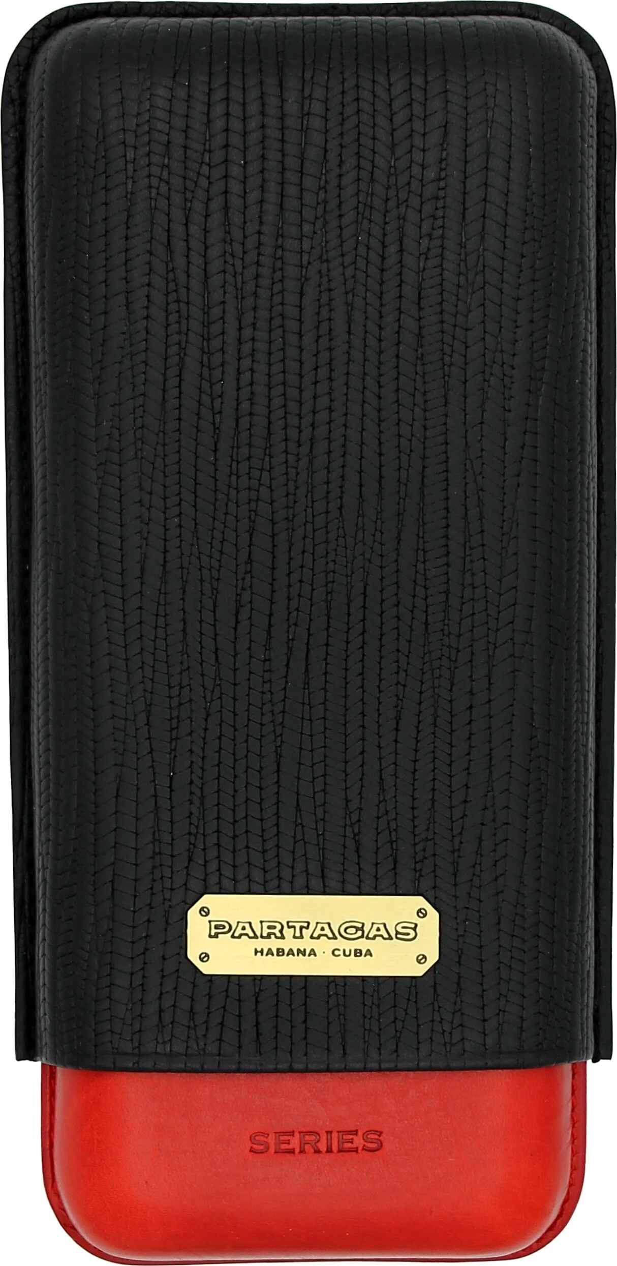 Custodia Tripla per Sigari Partagas in Pelle Nera e Rossa