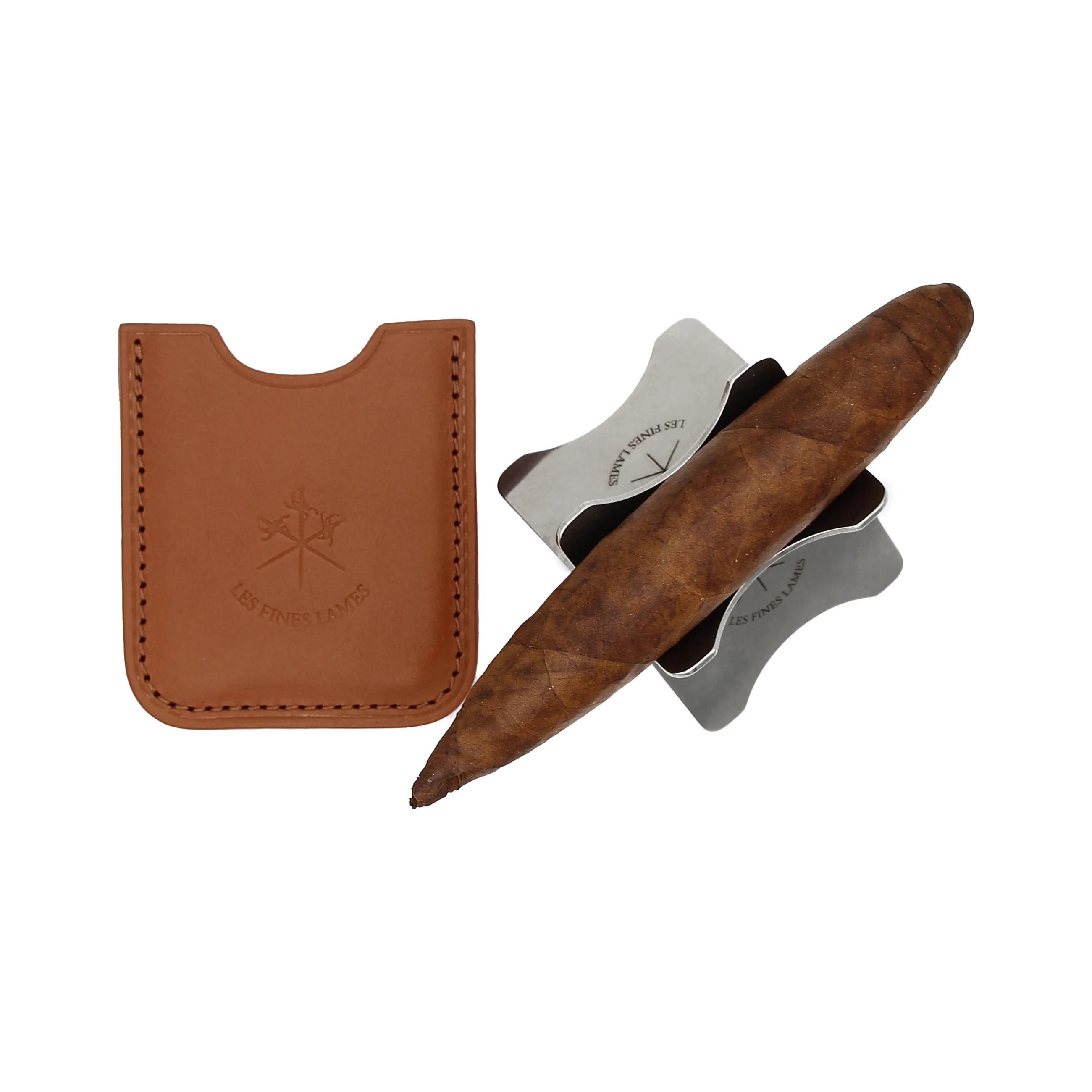 Portasigari Les Fines Lames con custodia in pelle color cuoio