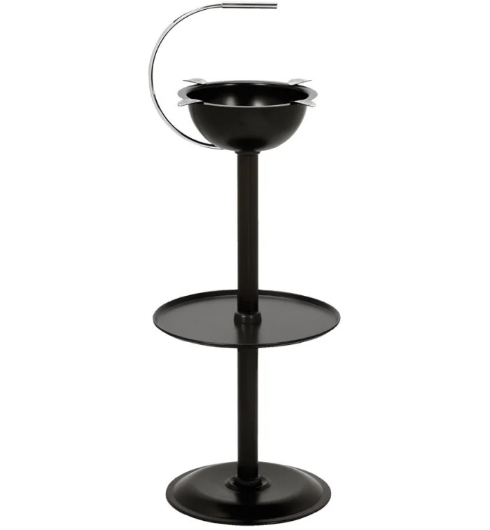 Il posacenere da Terra Stinky Cigar Black è il complemento perfetto per i fumatori di sigari esigenti che apprezzano la funzionalità e il design. Con il suo generoso vassoio di raccolta e i quattro poggia-sigari, offre il comfort ideale per le riunioni conviviali di sigari o per i momenti di relax in privato. Grazie alla stabile base in lamiera con un diametro di 25,5 cm, il posacenere si appoggia in modo sicuro su diverse superfici. Il profondo vassoio di raccolta assicura che la cenere si raccolga in modo ordinato e non si disperda, mentre la superficie nera opaca aggiunge un look sofisticato. Un'elegante maniglia argentata permette di riposizionarlo facilmente, in modo da poterlo collocare sempre dove serve. Il posacenere indipendente presenta anche una pratica area di stoccaggio al centro, ideale per riporre accessori importanti per il sigaro come il taglierino, l'accendino o l'accendino. Con un'altezza totale di 78 cm, questo posacenere indipendente può essere utilizzato comodamente sia in piedi che seduti. Caratteristiche principali del prodotto: