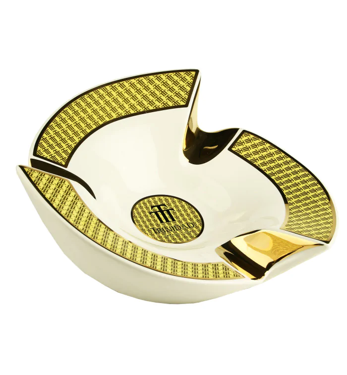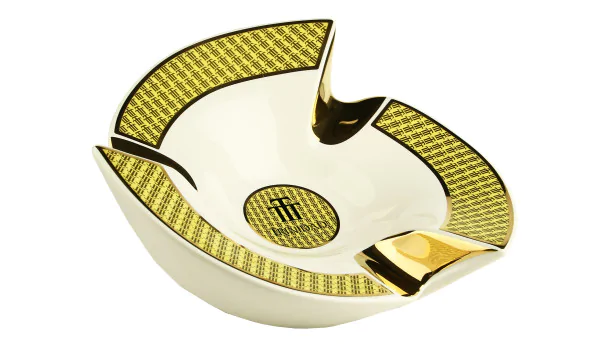 Posacenere Trinidad di Habanos Immergiti nel mondo della cultura del sigaro più raffinato con il Posacenere Trinidad di Habanos. Questo capolavoro in porcellana bianca, impreziosito da accenti gialli e dorati, affascina per la sua straordinaria forma ad A, che lo rende un vero e proprio richiamo visivo. L'iconico logo Trinidad è perfettamente integrato nel posacenere, conferendogli un'identità inconfondibile. Disegnato da Nelson Alfonso, un artista rinomato nel campo del cigar design, questo posacenere è un'opera d'arte in sé. Dotato di tre poggia sigari dorati, offre non solo una funzionalità pratica ma anche un tocco di lusso. Con un peso di 868 grammi e dimensioni di 22,5 x 22,5 x 7,5 cm, testimonia una lavorazione solida e precisa. Il Posacenere Trinidad viene consegnato in un'attraente confezione regalo, che lo rende un ambito oggetto da collezione o un regalo ideale per gli appassionati di sigari, noti anche come Aficionados. Acquista il Posacenere Trinidad di Habanos e lasciati conquistare dal suo design unico e dall'eccellenza artigianale. Un must per ogni appassionato di sigari.