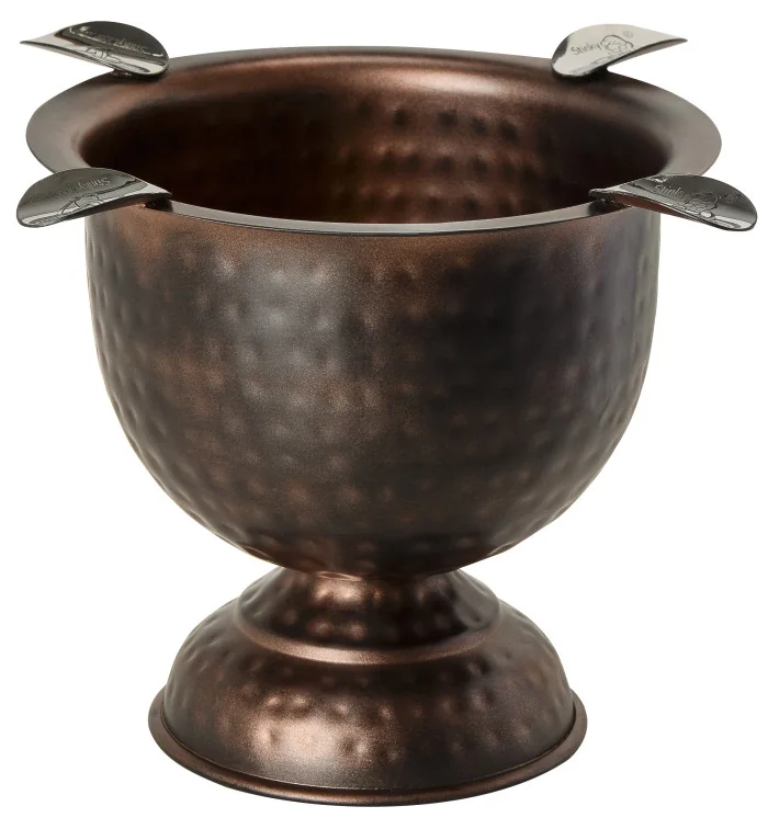 Posacenere Stinky Tall in Rame Martellato Il posacenere Stinky Tall in rame martellato è un vero e proprio richiamo visivo e un classico di culto tra i posacenere per sigari. Sviluppato dal marchio Stinky, che appartiene a Quality Importers, questo posacenere colpisce per la sua ciotola profonda e antivento e per la sua elegante base a piedistallo. La finitura in rame martellato gli conferisce un aspetto nobile e rustico che lo rende un accessorio speciale per gli amanti dei sigari. Questo resistente posacenere offre spazio per quattro sigari, che possono essere posizionati su ripiani liberi. Questo lo rende perfetto per gli incontri sociali ed è ideale per l'uso in bar, saloni o eventi. Grazie alla sua capacità particolarmente ampia, non deve essere svuotato continuamente. Il posacenere per sigari Stinky viene fornito in due parti: il corpo e la base del piedistallo devono solo essere assemblati con una vite in dotazione. La pulizia è particolarmente facile, in modo che l'attenzione rimanga sempre rivolta al piacere del sigaro. Dettagli tecnici: