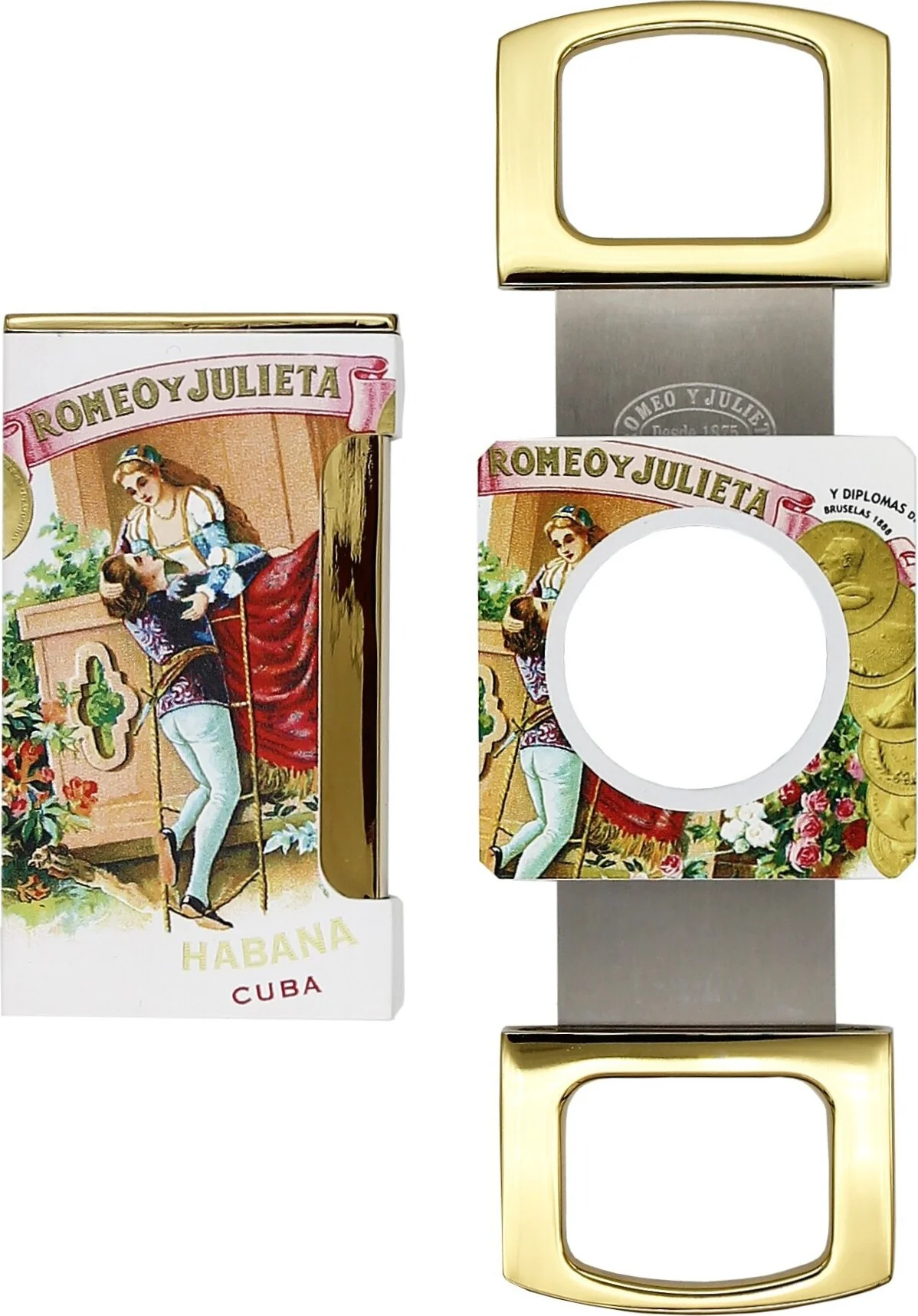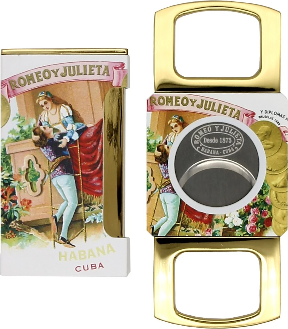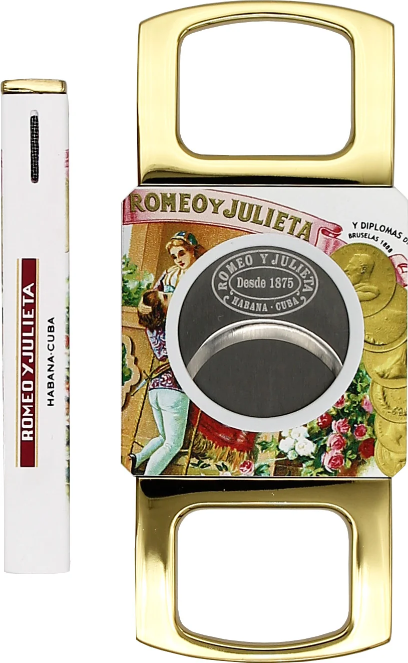 Questo set con Accendino e Tagliasigari Romeo y Julieta combina due accessori di alta qualità del famoso marchio di sigari cubano. Il marchio Romeo y Julieta è uno dei più rinomati produttori di sigari cubani e la storia di Romeo e Giulietta, famosa in tutto il mondo, è incorporata con stile nel design. Sia il taglierino che l'accendino presentano l'iconica scena del balcone e il logo del marchio su entrambi i lati, conferendo al set un aspetto distintivo.