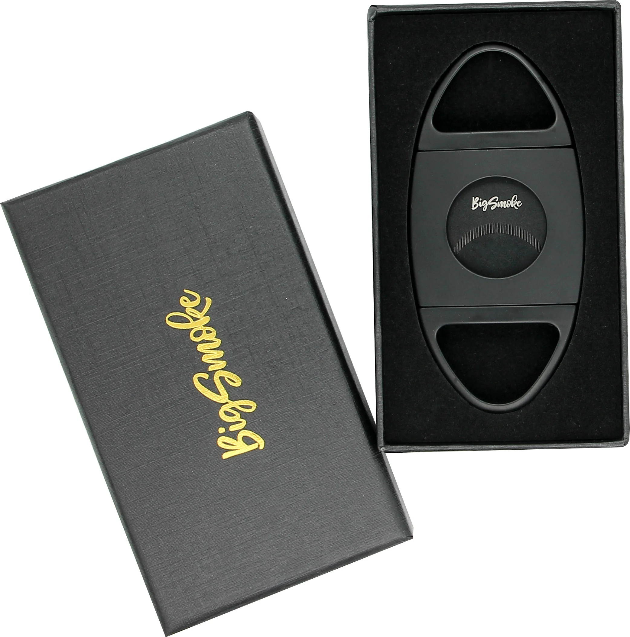 Eleva la tua esperienza di fumatore con il Tagliasigari BigSmoke Nero, un pezzo forte per intenditori e aficionados. Prova la differenza di qualità e stile.