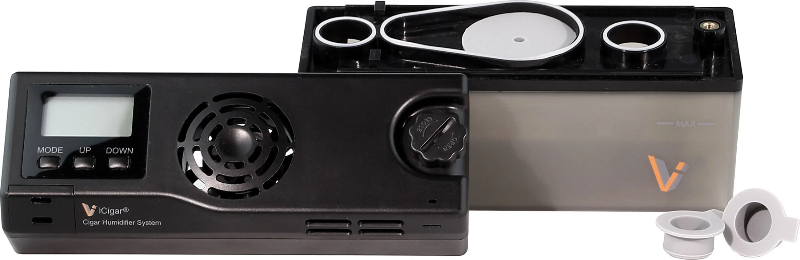 Die Feuchtigkeit wird durch bürstenlose Lüfter im oberen Teil des Geräts verteilt. Diese sorgen für eine robuste und dennoch flüsterleise Befeuchtung, die bis zu mehrere Monate pro Nachfüllung hält. Der obere Teil verfügt außerdem über eine leistungsstarke Mikroprozessorsteuerung und ein großes digitales LCD-Display, das die aktuelle Luftfeuchtigkeit, Temperatur sowie Höchst- und Tiefstwerte anzeigt. Das Gerät zeigt außerdem einen 3-Tage-Durchschnittswert für die Luftfeuchtigkeit an, sodass Sie den aktuellen Zustand Ihrer Zigarren genauer bestimmen können. Die Werkseinstellung ist 70 % Luftfeuchtigkeit. Das Gerät ermöglicht jedoch eine manuelle Luftfeuchtigkeitsregelung im Bereich von 40 % bis 90 %. So haben Sie mehr Flexibilität, Ihre Zigarren auf dem gewünschten Niveau zu halten.