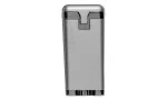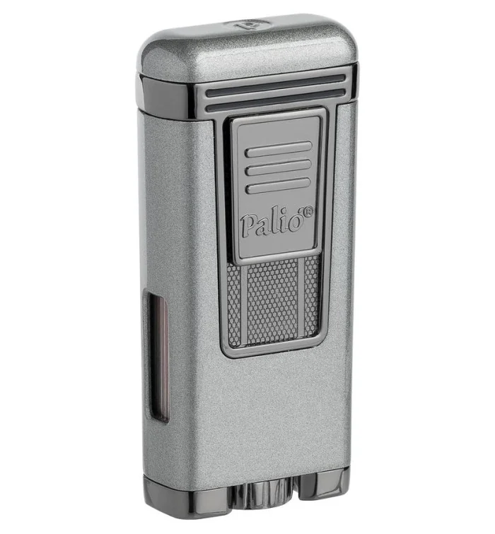 Palio Polaris Jet-Feuerzeug in Silber ist ein leistungsstarkes und modernes Jet-Feuerzeug mit einem eleganten, mattsilbernem Finish und stilvollen glänzenden Akzenten. Mit seinen drei intensiven Jet-Flammen, die sich zu einem kräftigen Brenner vereinen, bietet dieses Feuerzeug eine besonders zuverlässige Zündung für Zigarrenliebhaber. Die Zündung ist durch eine Schutzklappe vor Staub und Flusen abgeschirmt, was die Langlebigkeit und konstante Zündfähigkeit des Feuerzeugs sichert. Der Markenschriftzug von Palio ist auf dem Auslöser auf der Vorderseite angebracht und ermöglicht das einfache Entzünden durch Herunterschieben des Auslösers. Ein großes, gut einsehbares Gasfenster mit Füllstandsanzeige befindet sich auf der linken Seite und sorgt dafür, dass der Füllstand stets leicht kontrolliert werden kann. Natürlich ist das Feuerzeug nachfüllbar und die Flammenintensität kann am Fuße des Feuerzeugs ganz bequem ohne zusätzliches Werkzeug reguliert werden.