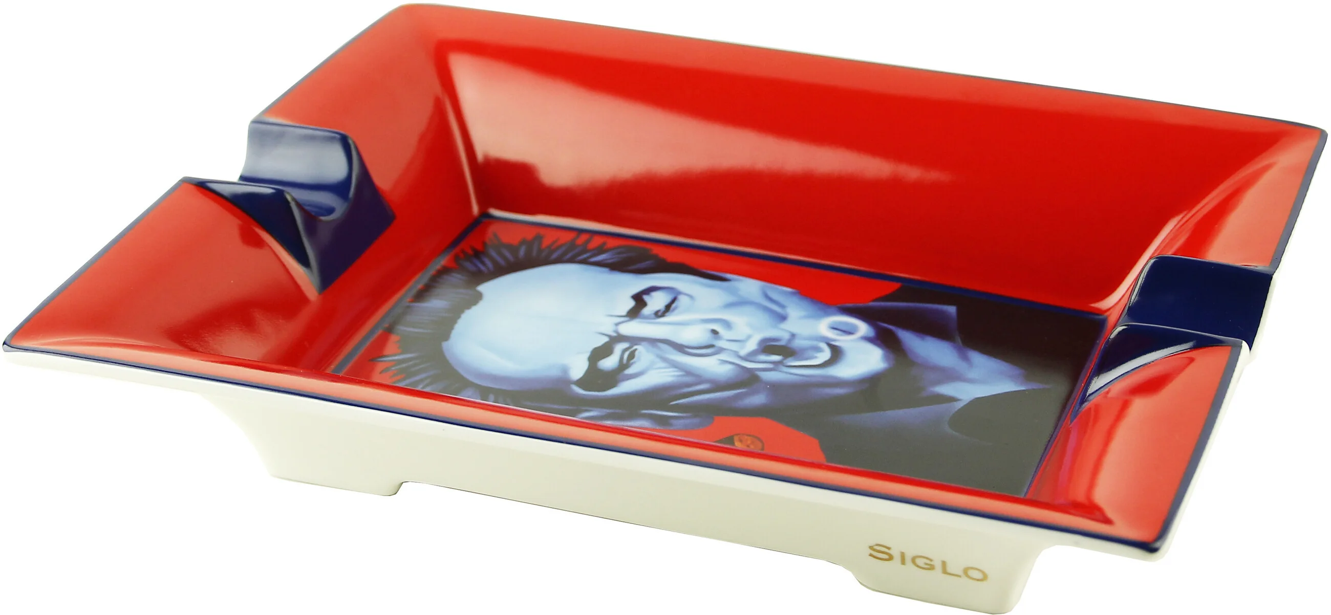 Siglo Aschenbecher Jack Nicholson ist ein auffälliger Zigarrenaschenbecher in leuchtendem Rot und Blau und zeigt das ikonische Bild von Jack Nicholson, der genüsslich Rauch-Ringe mit einer Zigarre in der Hand bläst. Nicholson, bekannt für seine langjährige Liebe zur Zigarre, verkörpert das genussvolle Rauchen wie kaum ein anderer. Dieser außergewöhnliche Aschenbecher ist ein echtes Statement-Piece und zieht die Aufmerksamkeit auf sich.