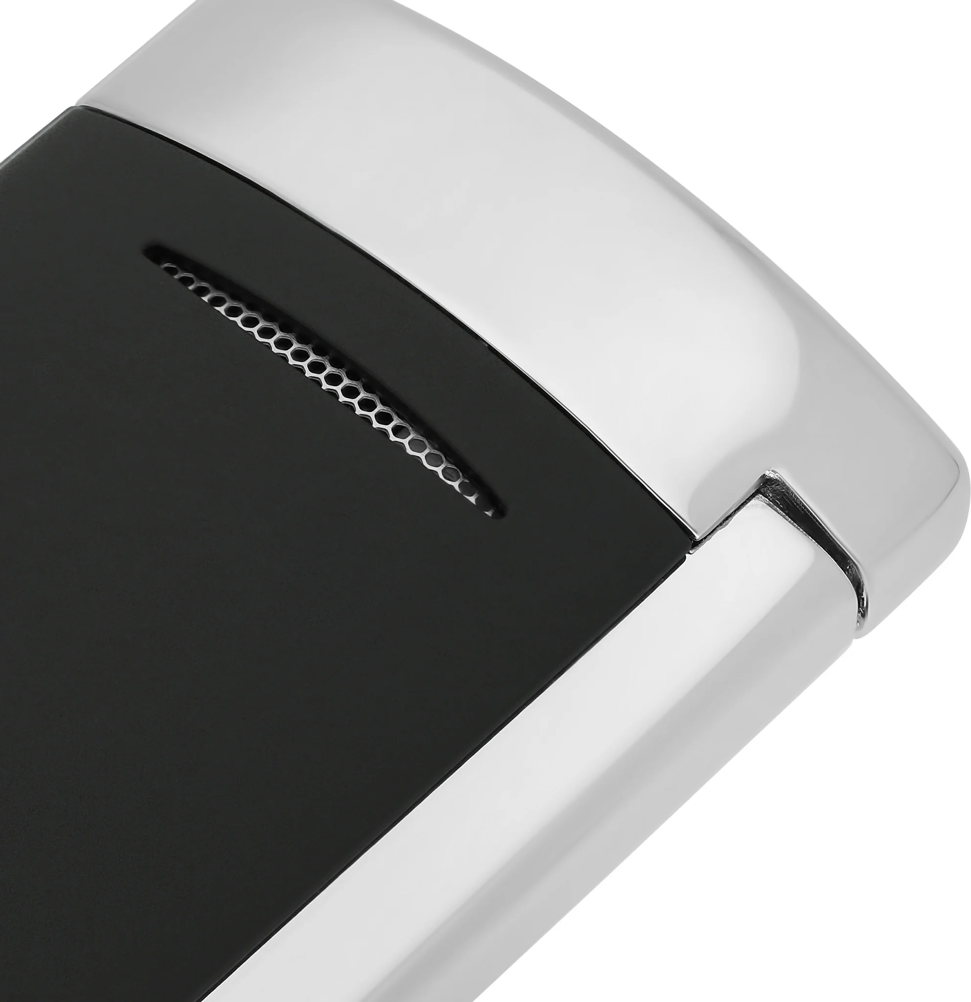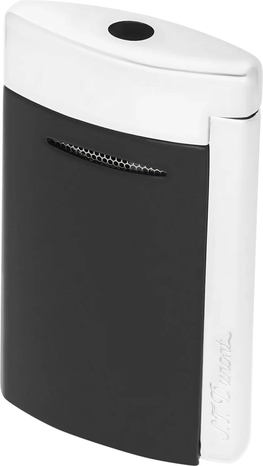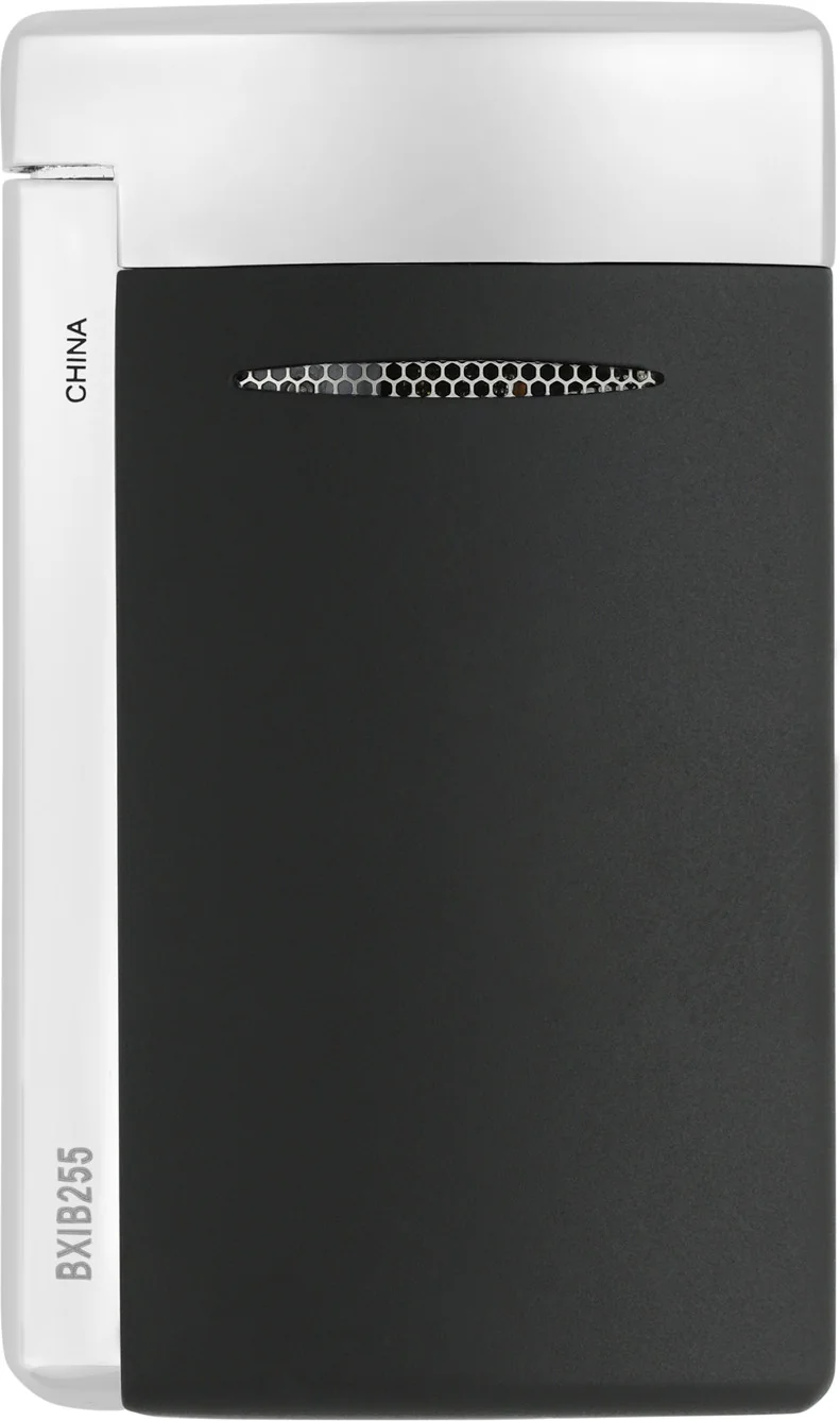 S.T. Dupont Minijet Feuerzeug in mattem schwarz mit Akzenten in Chrom ist ein edles und handliches Feuerzeug, das mit seiner leistungsstarken Jet-Flamme und der elektrischen Piezo-Zündung beeindruckt. Die schwarze Oberfläche mit polierten Chromakzenten macht es zu einem stilvollen Accessoire für den täglichen Gebrauch.