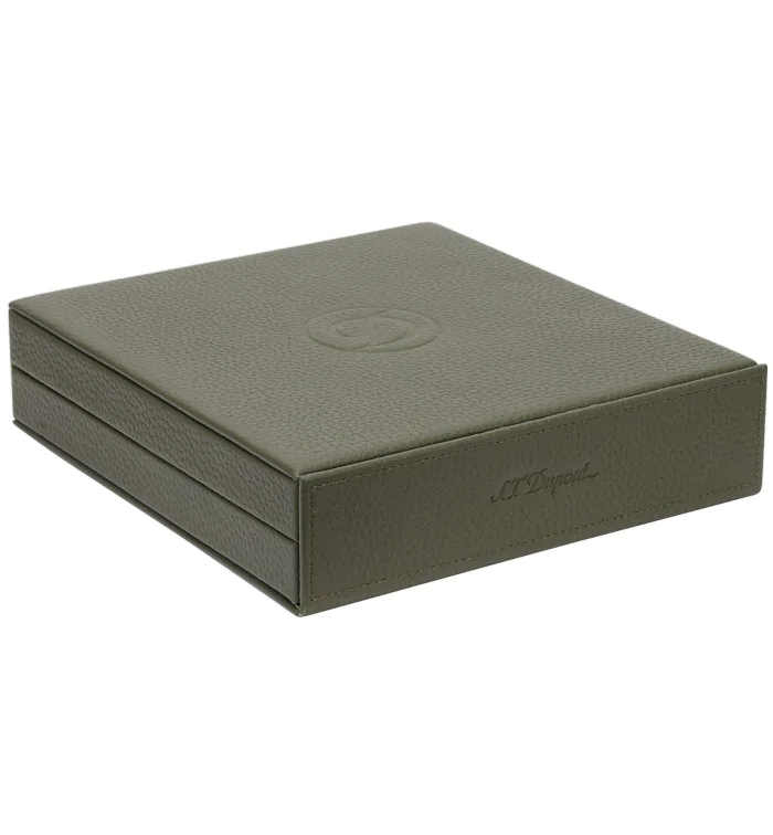 S.T. Dupont Reisehumidor Khaki ist ein eleganter Reisehumidor für Zigarren des französischen Luxusartikelherstellers S.T. Dupont. Dieser Reisehumidor ist auf allen Außenseiten mit feinstem, weichem Leder in der Farbe Khaki überzogen. Auf der Oberseite des Humidors ist das wiedererkennbare "D" der Marke eingeprägt, während sich auf der Vorderseite der Markenschriftzug befindet. Hinter dem Markenschriftzug verbirgt sich ein magnetischer Klappverschluss. Wird dieser heruntergeklappt, lässt sich der luftdicht verschlossene Reisehumidor öffnen, und das feinporige Okumé-Holz kommt zum Vorschein, welches hervorragende Luftfeuchteeigenschaften aufweist.